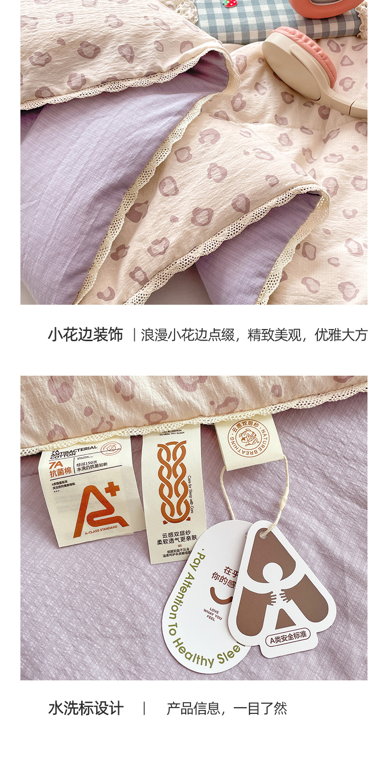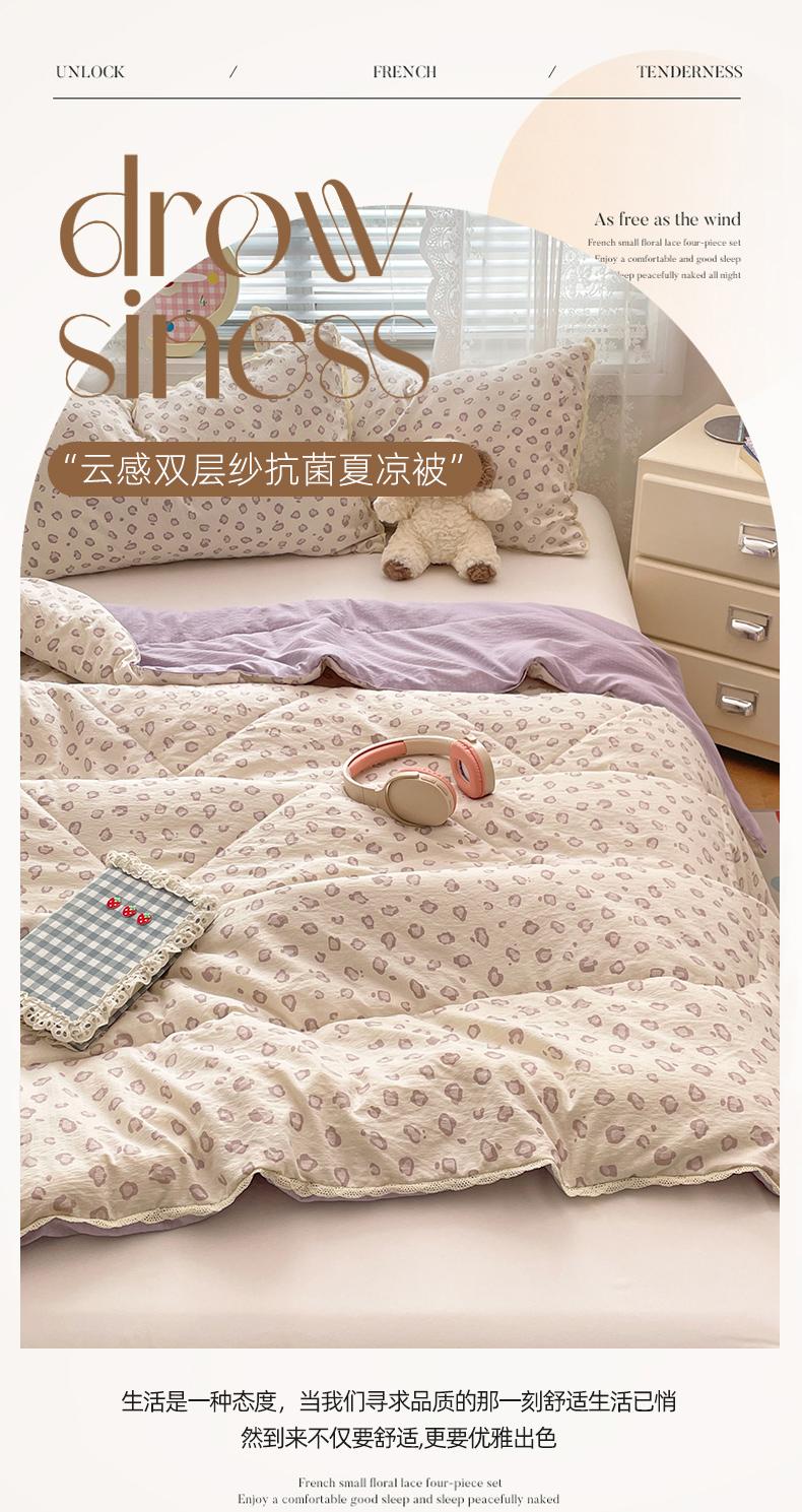商品名称:优承佳生活馆 2025新款云感双层纱浪漫小花边抗菌夏被子被芯 山茶物语