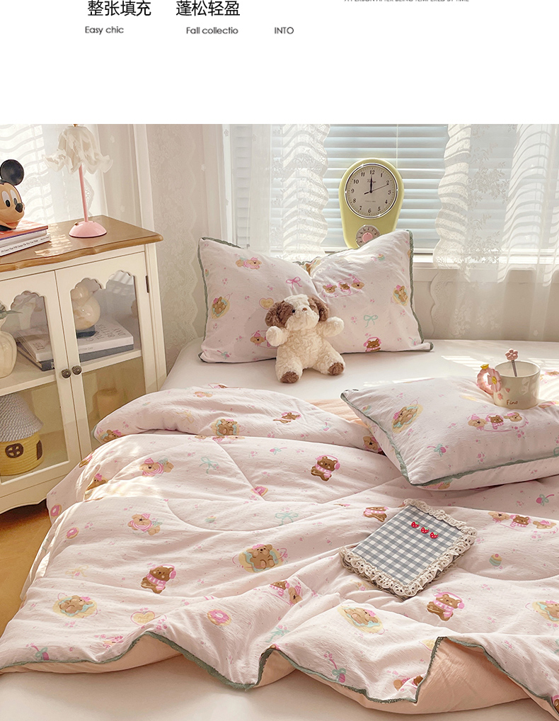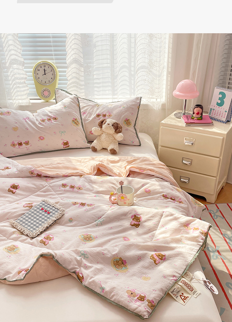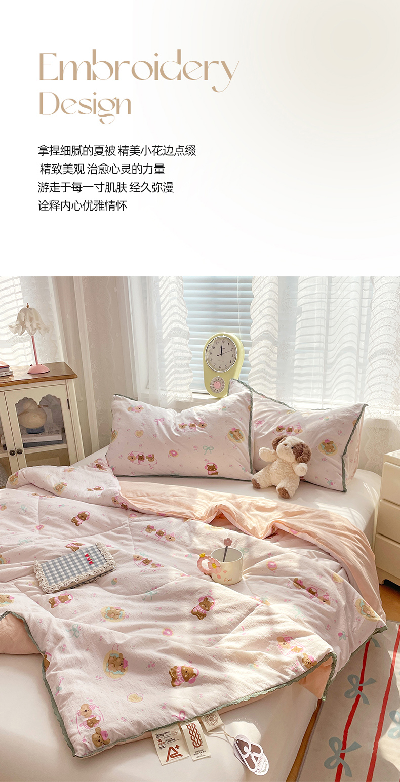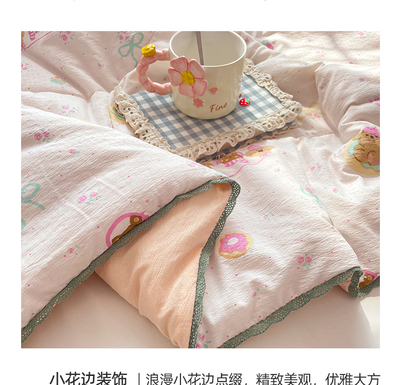 商品名称:优承佳生活馆 2025新款云感双层纱浪漫小花边抗菌夏被子被芯 熊熊手帐