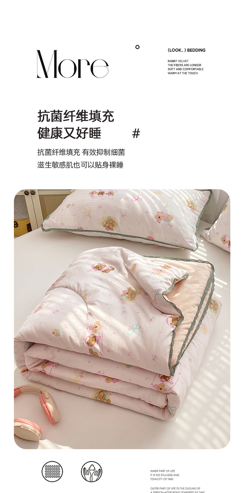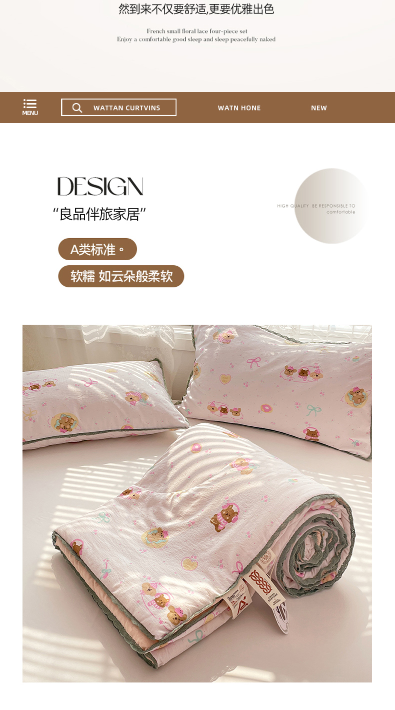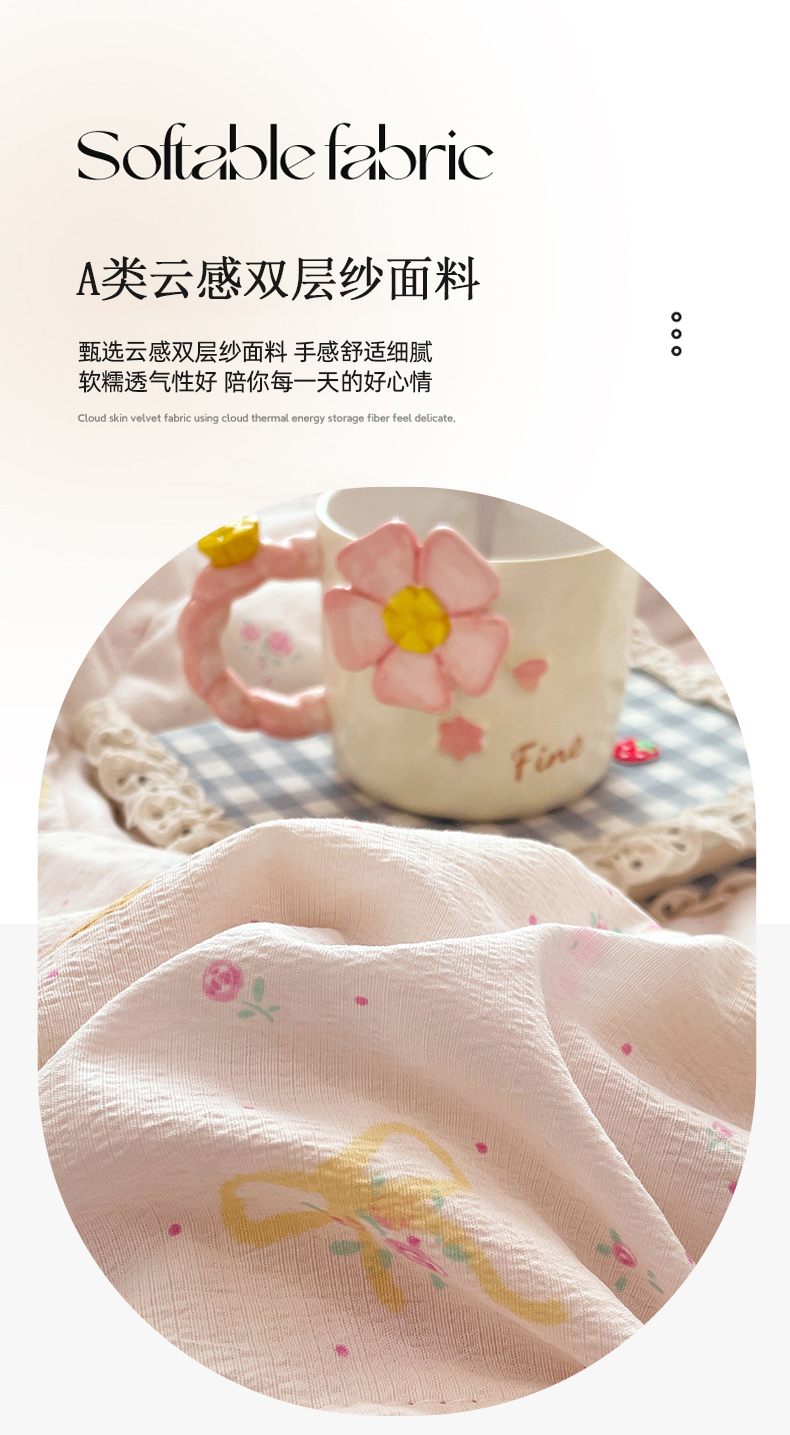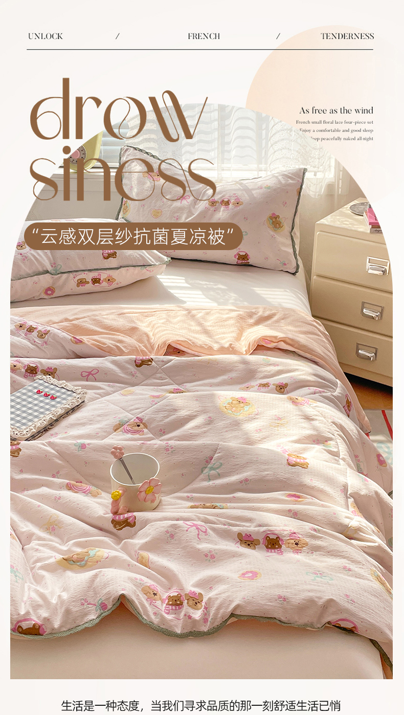 商品名称:优承佳生活馆 2025新款云感双层纱浪漫小花边抗菌夏被子被芯 熊熊手帐