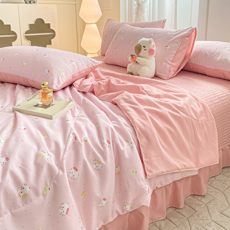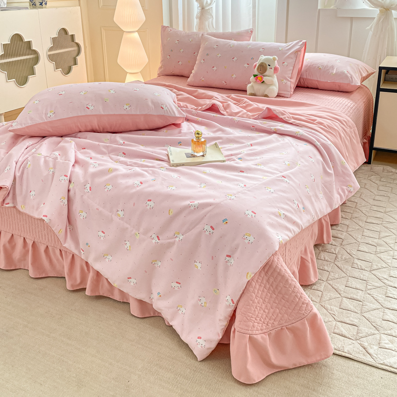 商品名称:一比一家纺 2025新款针织双层纱夏被床盖四件套单夏被单床盖单品 凯蒂猫
