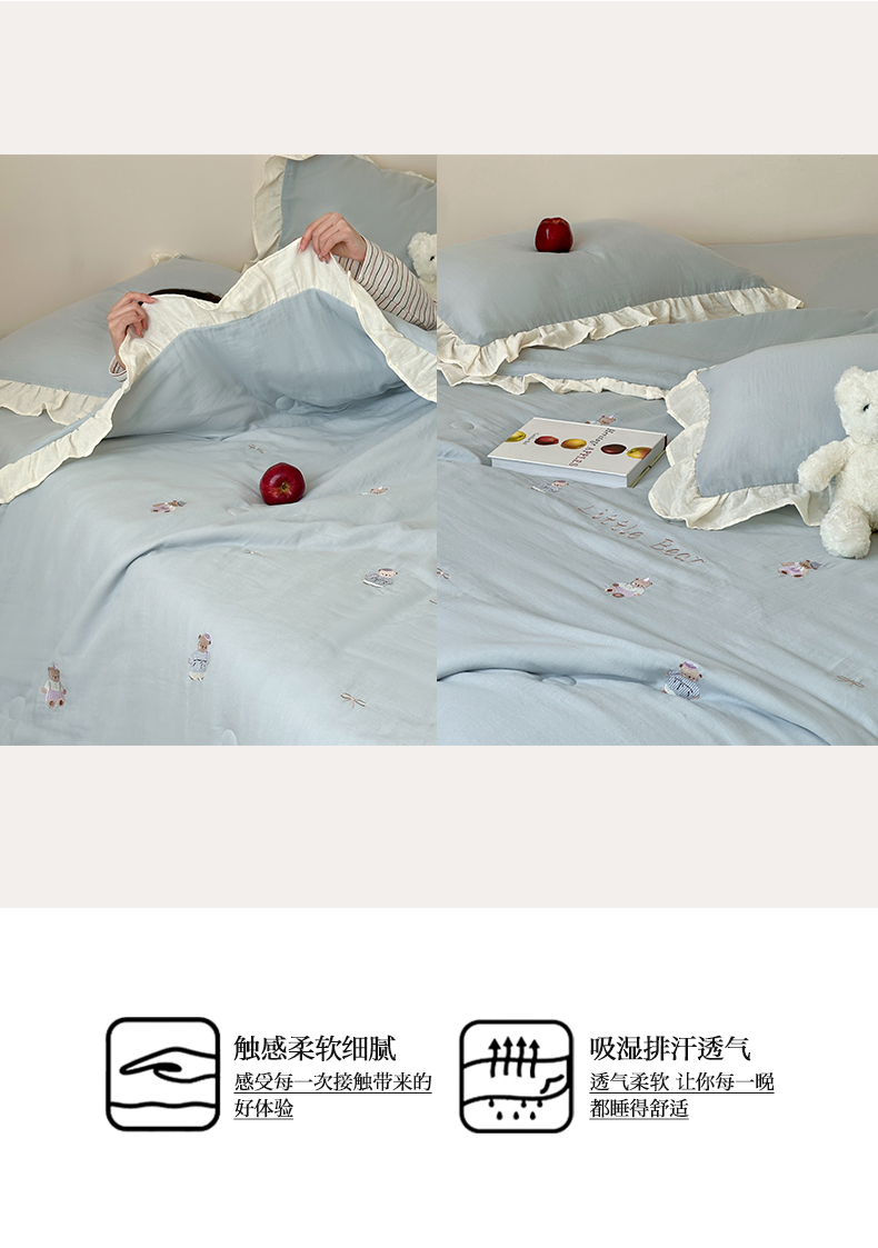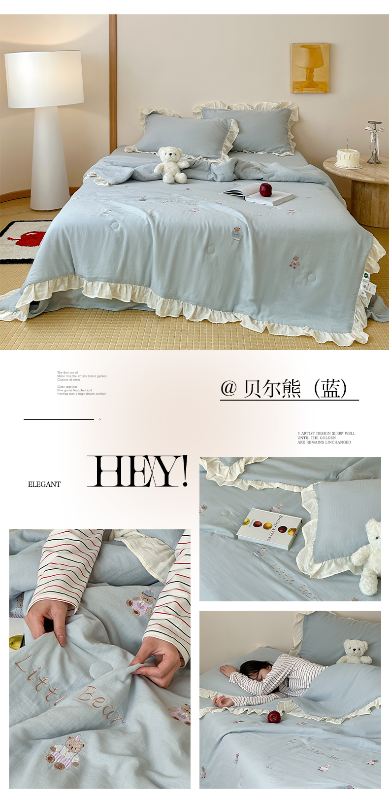 当前位置: 91家纺网 > 商品网购 > 床品套件 > 四件套 > 全棉普通四件套 > 卡巴伦2025新款A类全棉双层皱皱纱绣花娜雅醋酯纤维夏被四件套 贝尔熊(蓝)