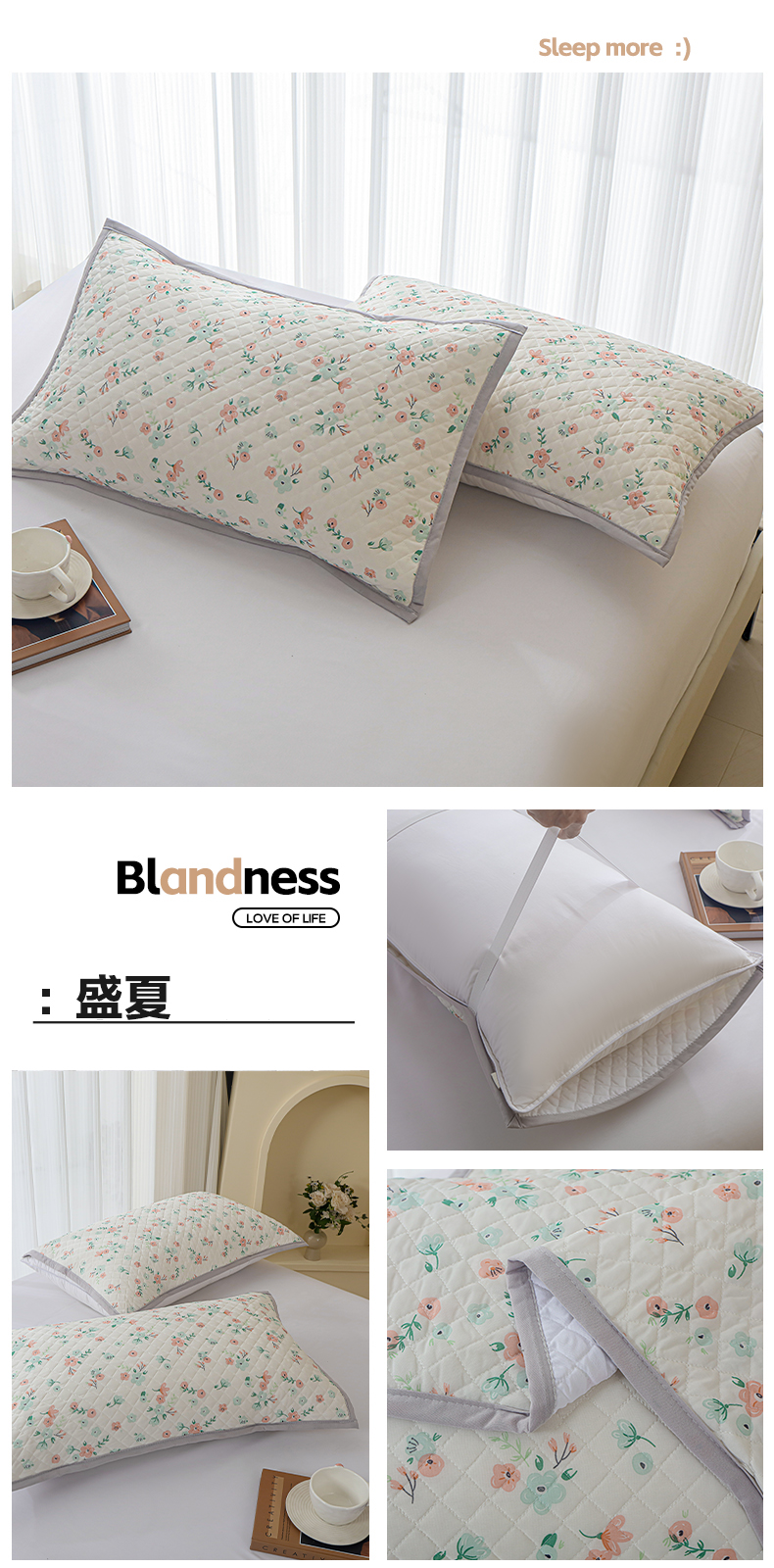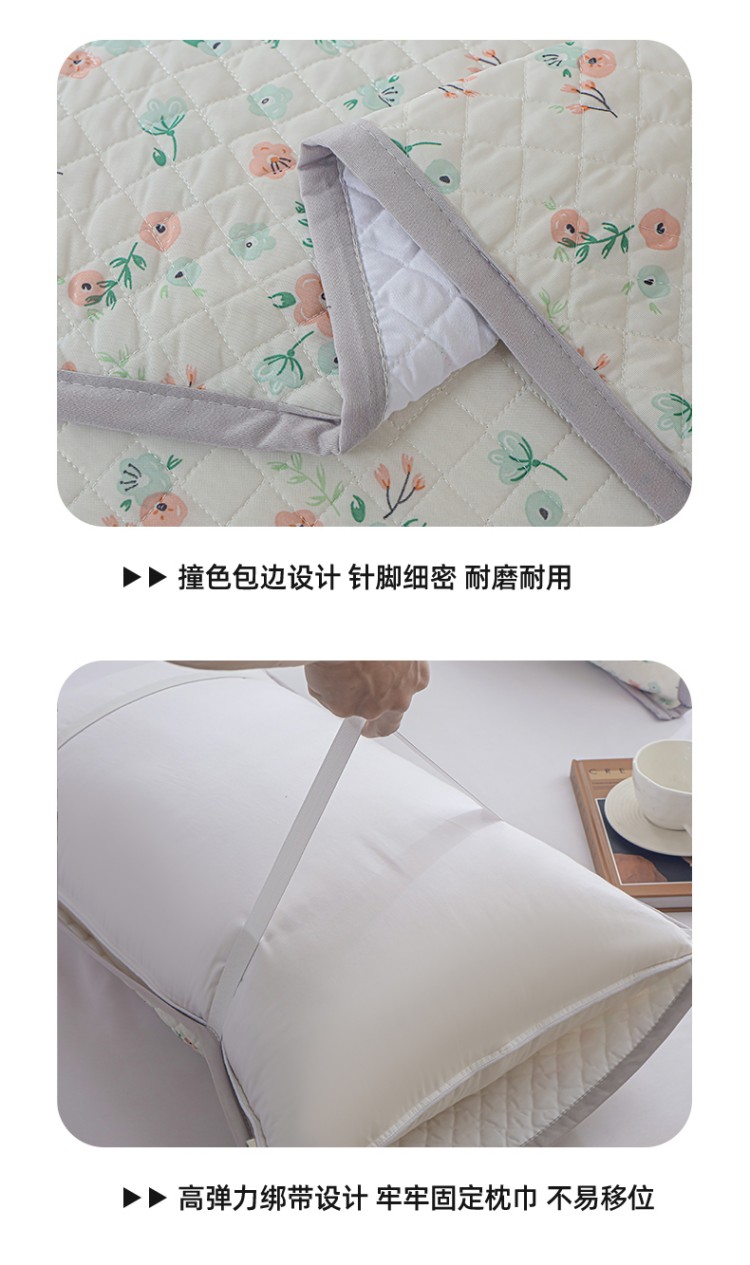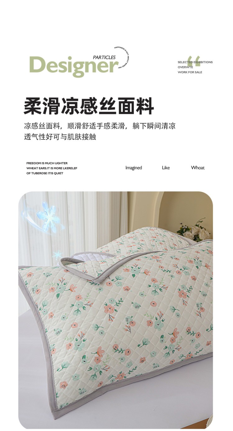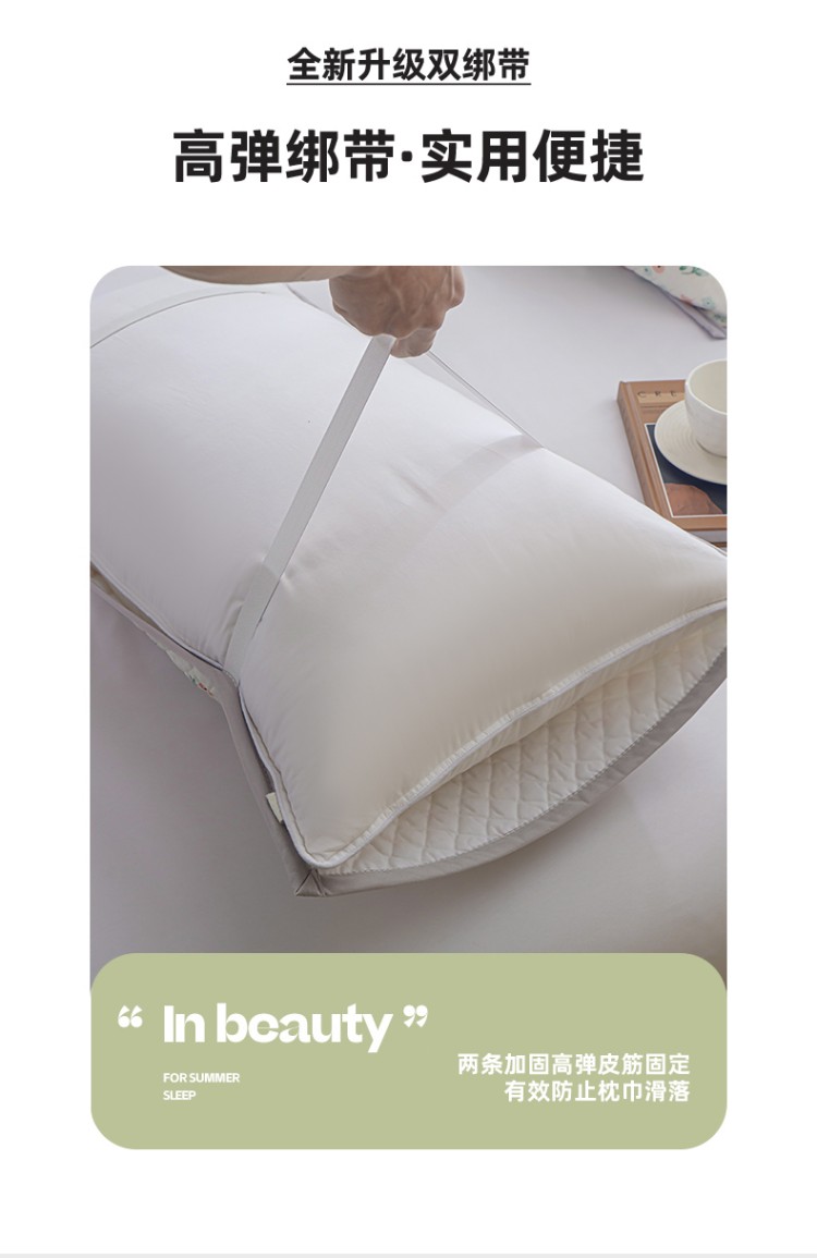 商品名称:美宜家 2025新款夏季凉感丝绗缝绑带枕巾隔脏吸汗冰丝枕巾 盛夏 一只