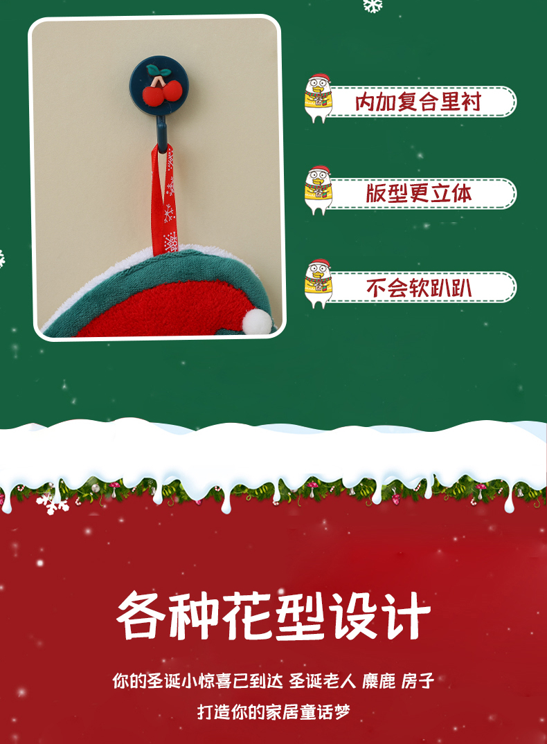 当前位置: 91家纺网 > 商品网购 > 居家日用 > 毛巾/浴巾/浴袍 > 手巾/手帕 > 彩虹毛巾 2025新款珊瑚绒卡通可挂式加厚吸水不掉毛可爱小毛巾厨房洗手间挂巾便携式懒人擦手布-圣诞系列 圣诞老人18*23cm 擦手巾/只
