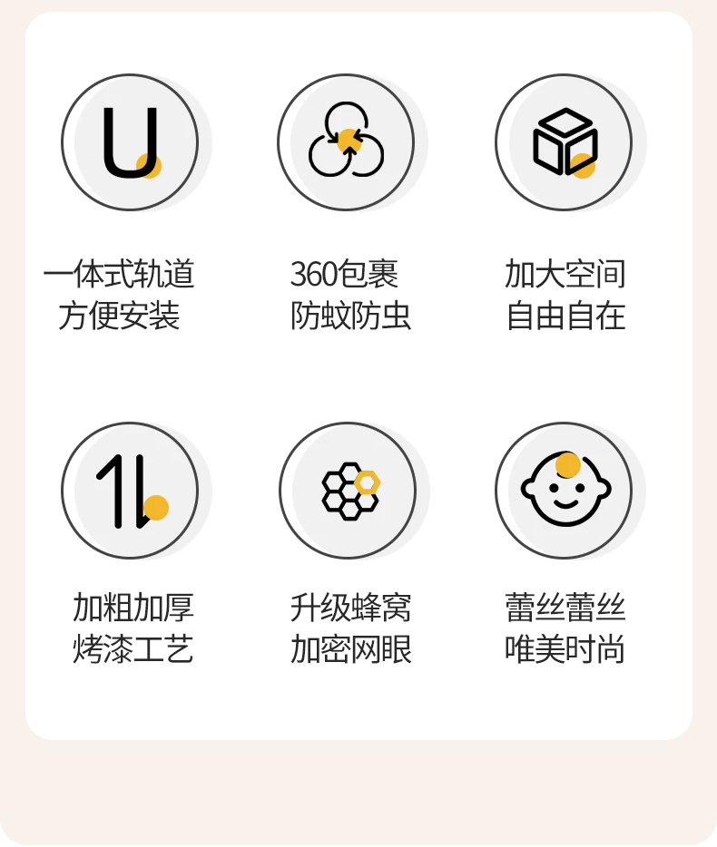 商品名称:(总)夏彩 2025新款双轨铁接口带皮条铝合金蕾丝轨道蚊帐-88537