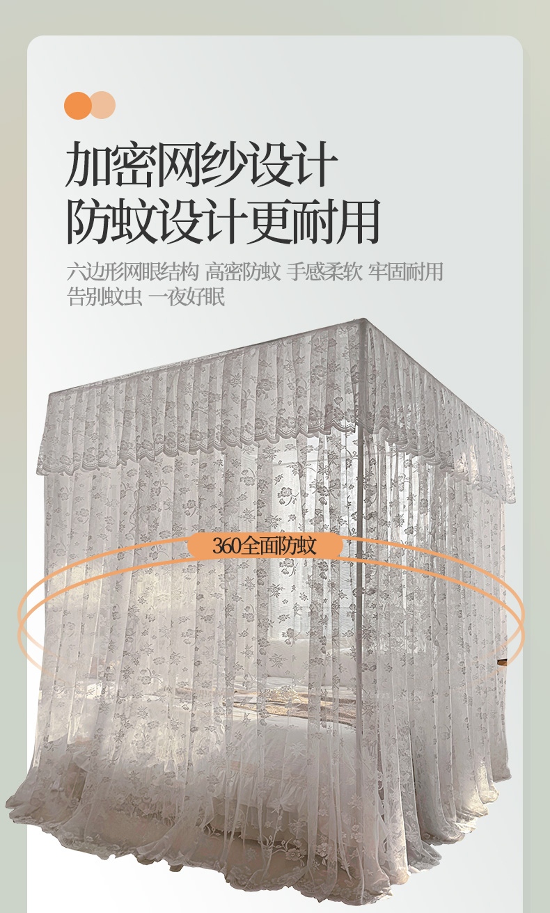 (总)夏彩 2025新款蕾丝U型防摔坐床蚊帐-88630,绿雅灰,藕玉色,香槟色