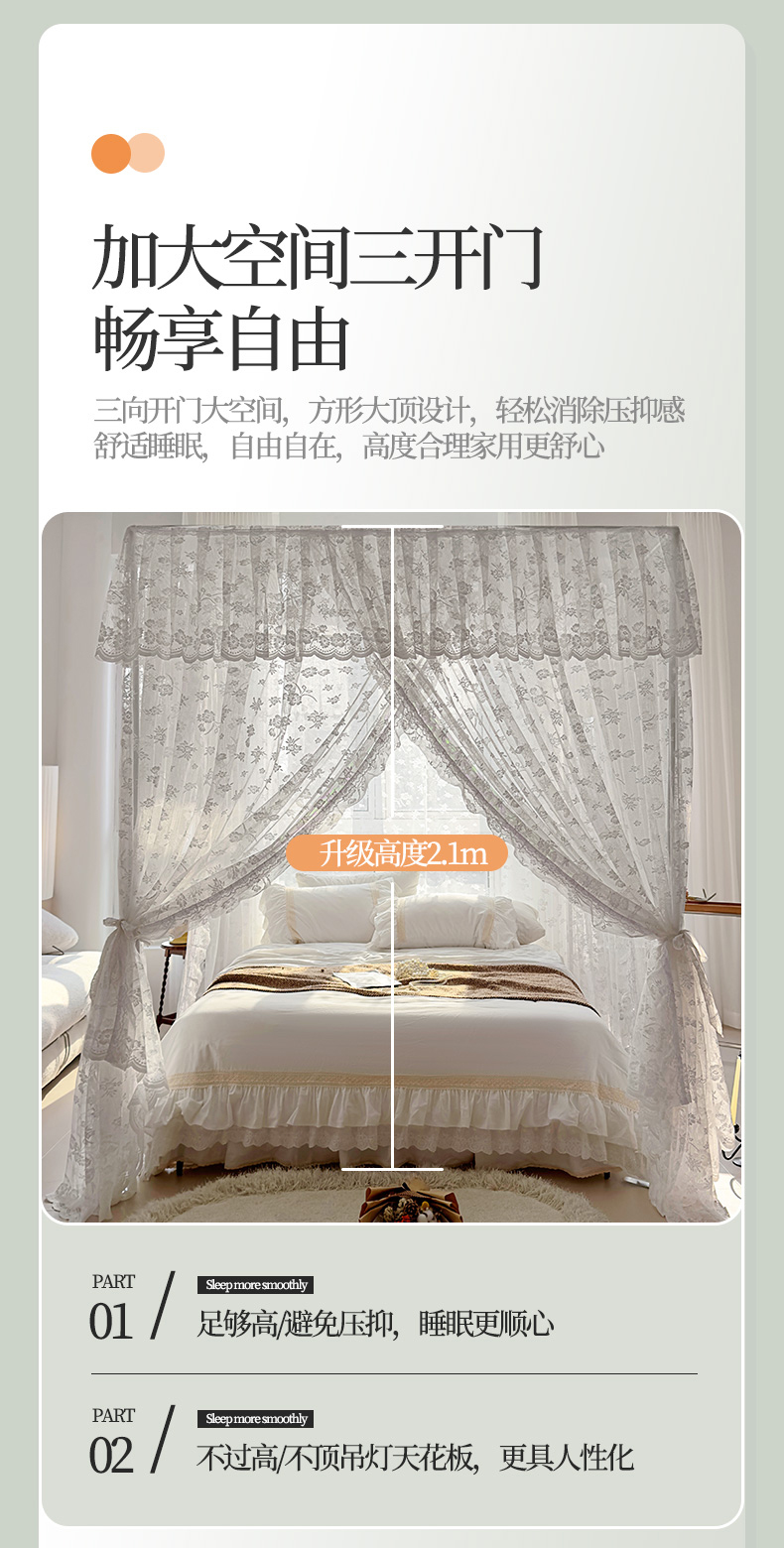 (总)夏彩 2025新款豪华宫廷蕾丝睡帐-88599,88599-公主白,88599-公主粉,88599-公主玉,88599-蓝灰色