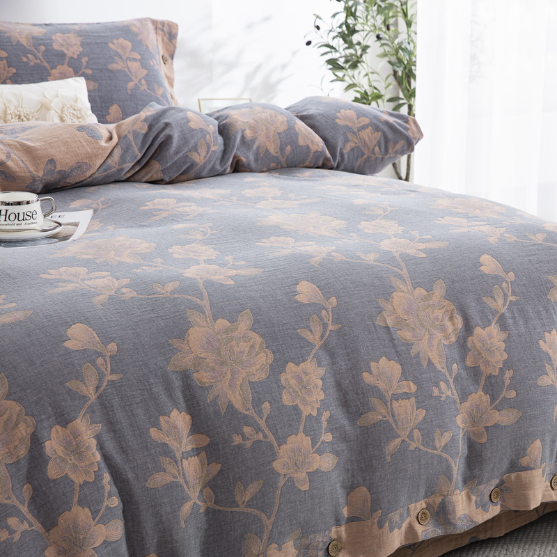 (总)鲁爱家纺供货 2025新款韩版色织提花四件套,花都-灰,花都-咖,兰亭序-豆沙,梅醉春秋-粉,梦蝶-浅咖,鸟语花香-浅咖,醉云间-绿