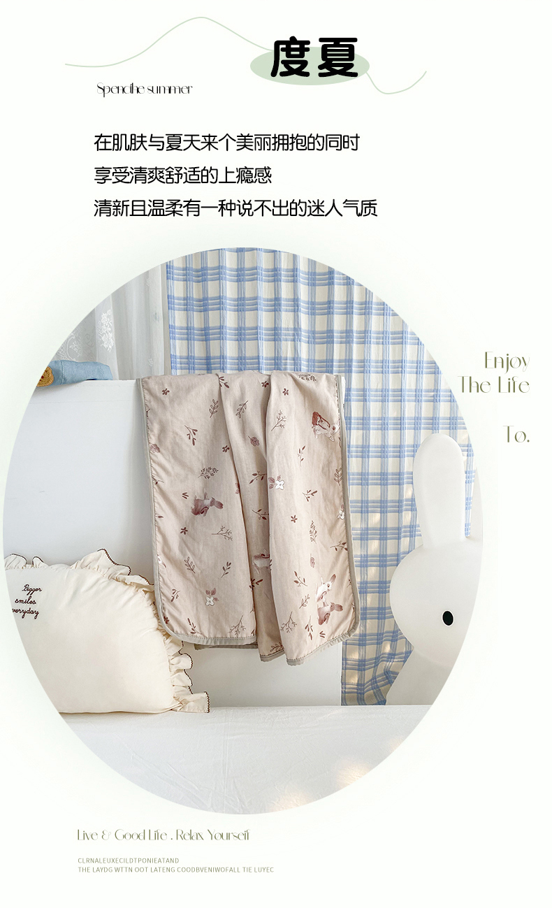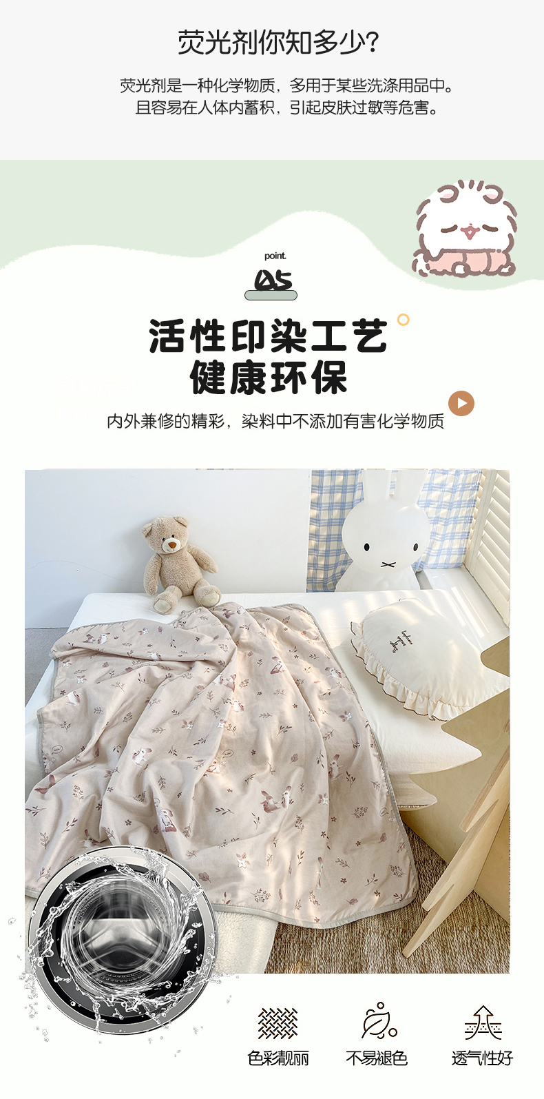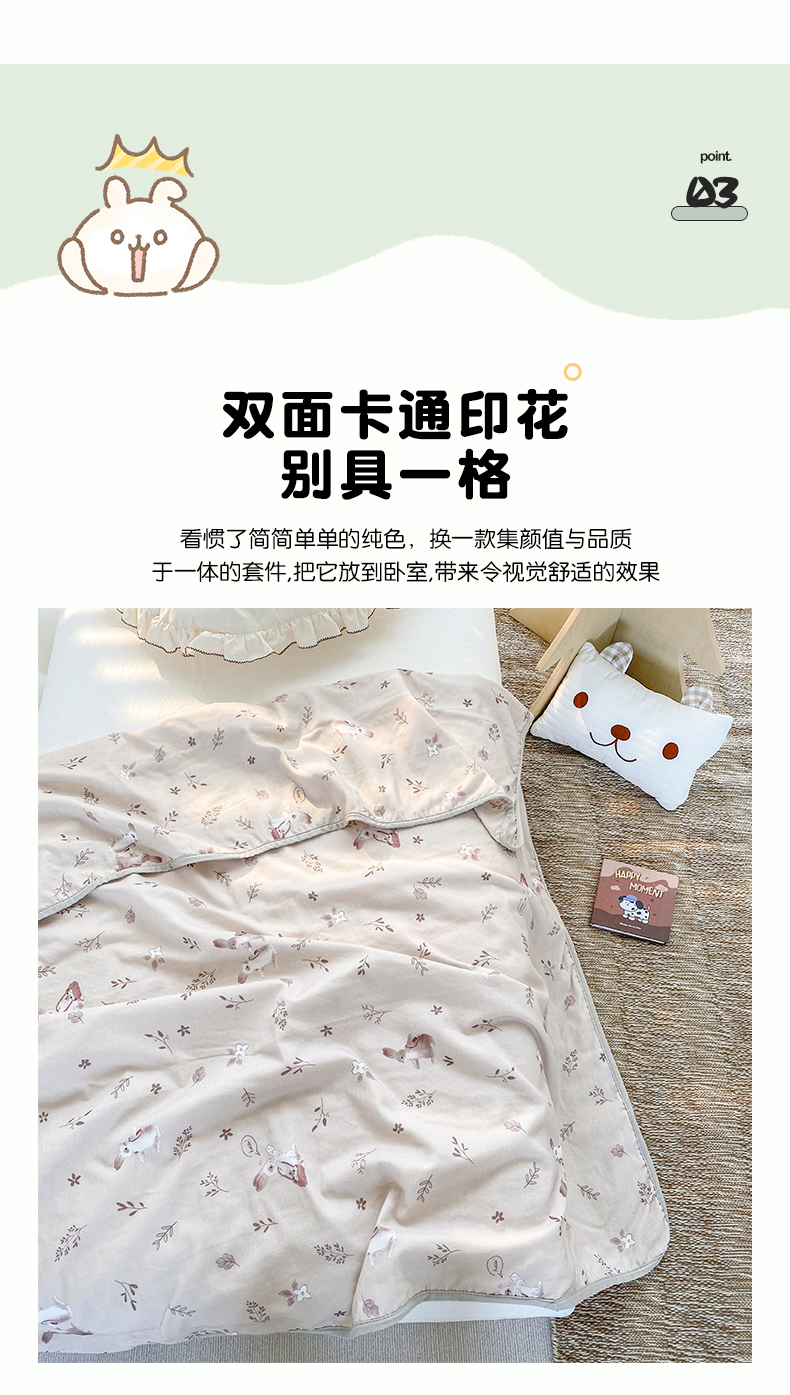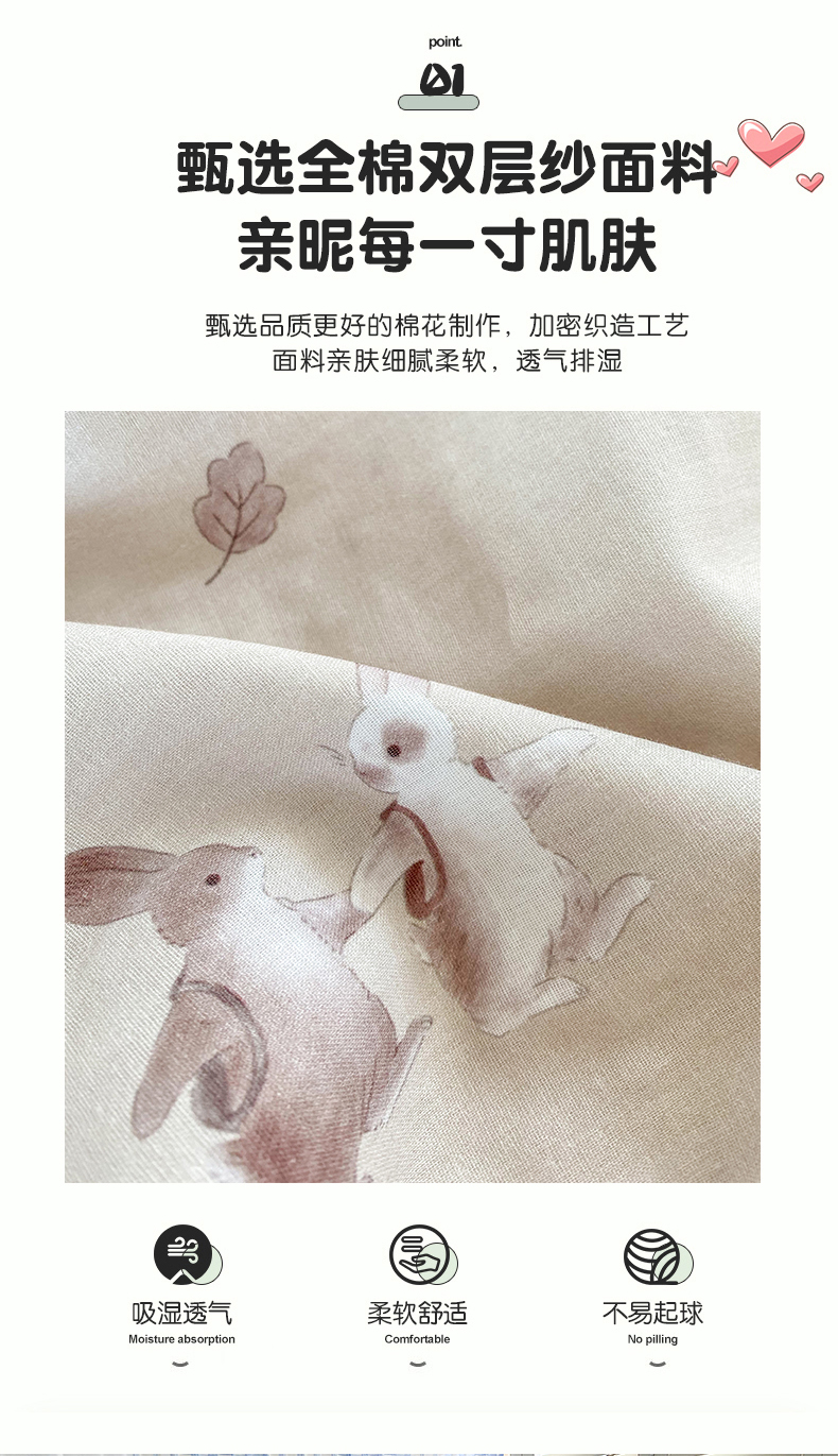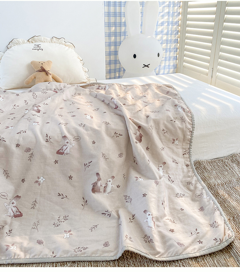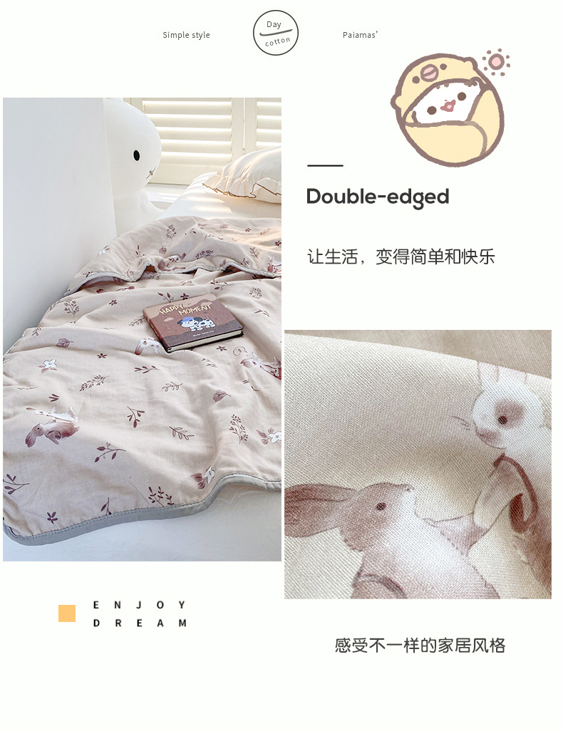 商品名称:潮邦 2025新款全棉双层纱多功能盖毯 背包兔