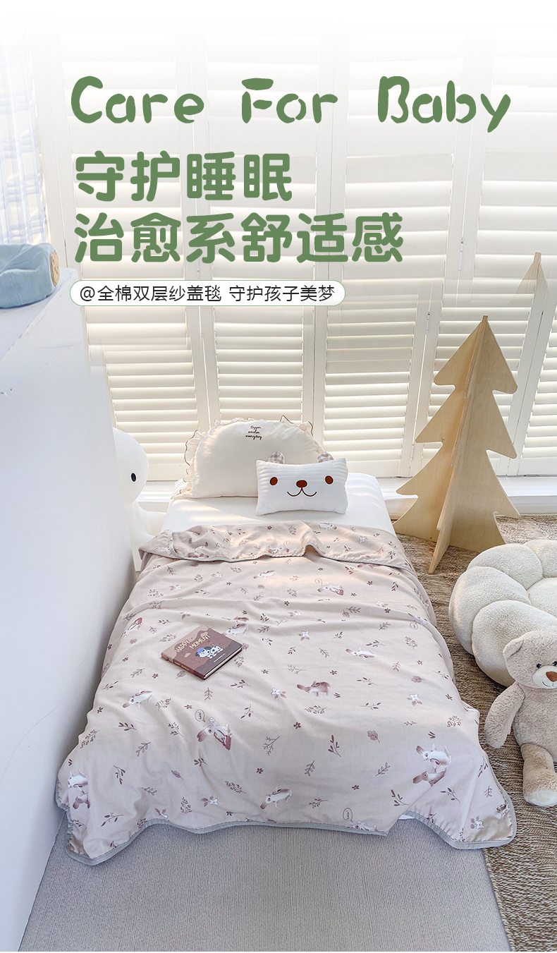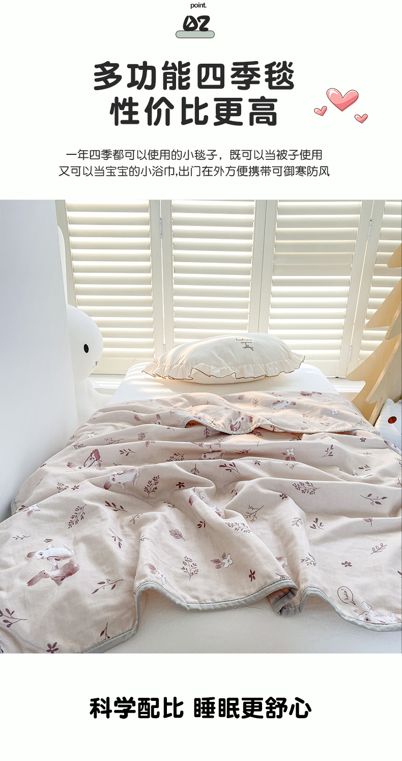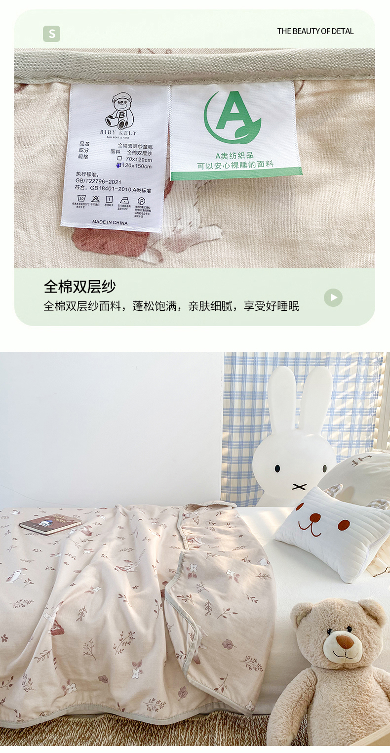(总)潮邦 2025新款全棉双层纱多功能盖毯,白露-白,背包兔,彩虹糖,车厘子,动物派,秋之花,甜心字母,兔跳跳,兔之园,心怡粉,雨伞兔,棕熊