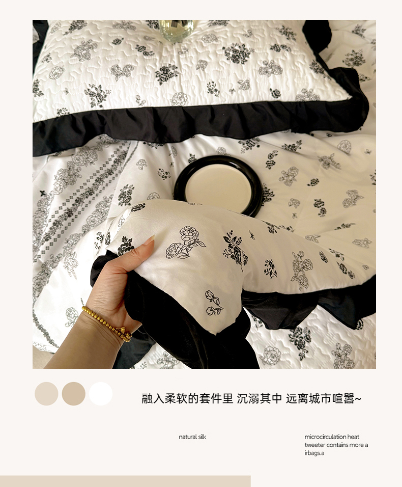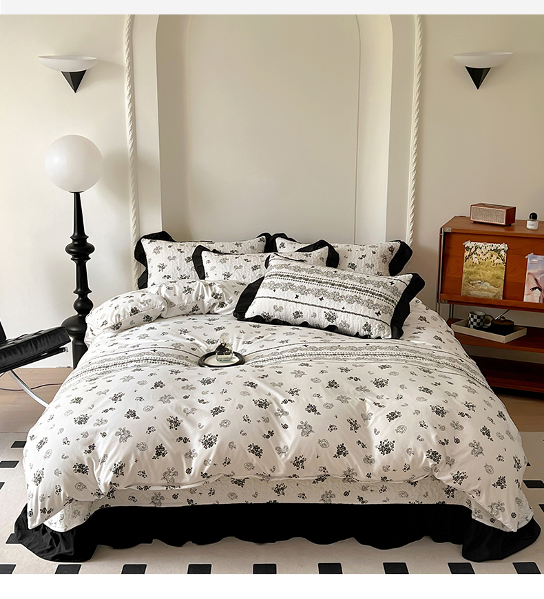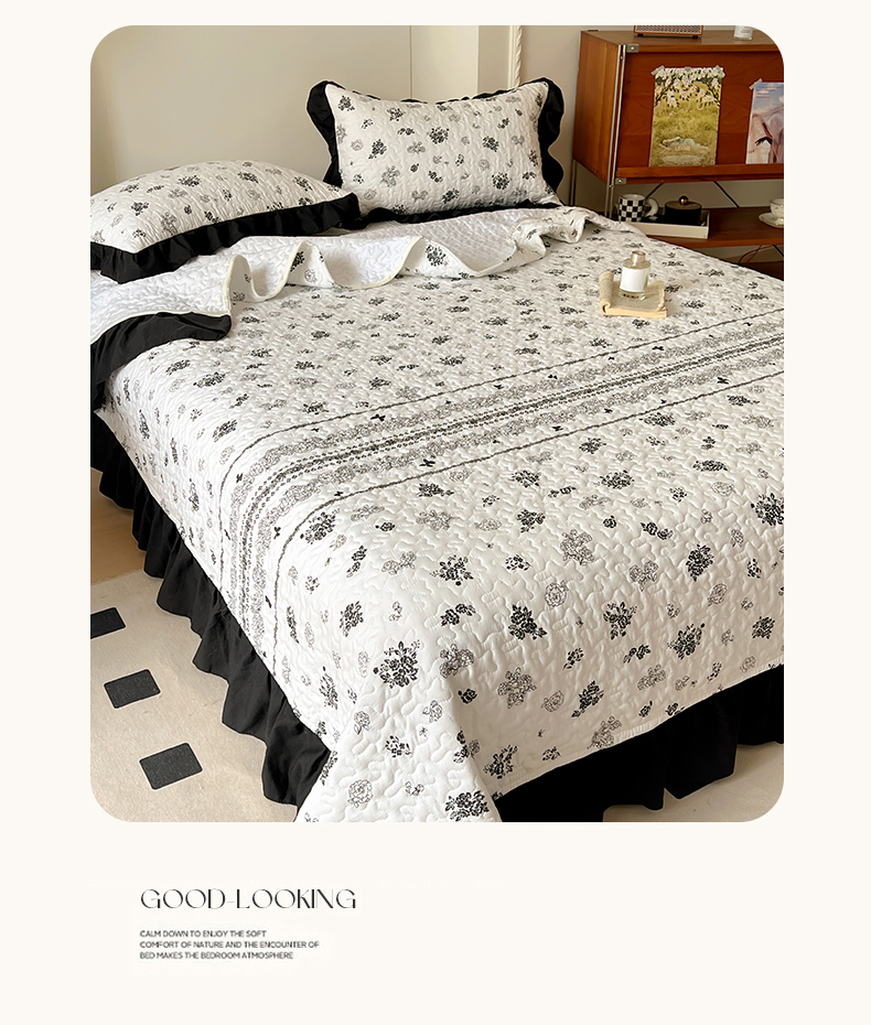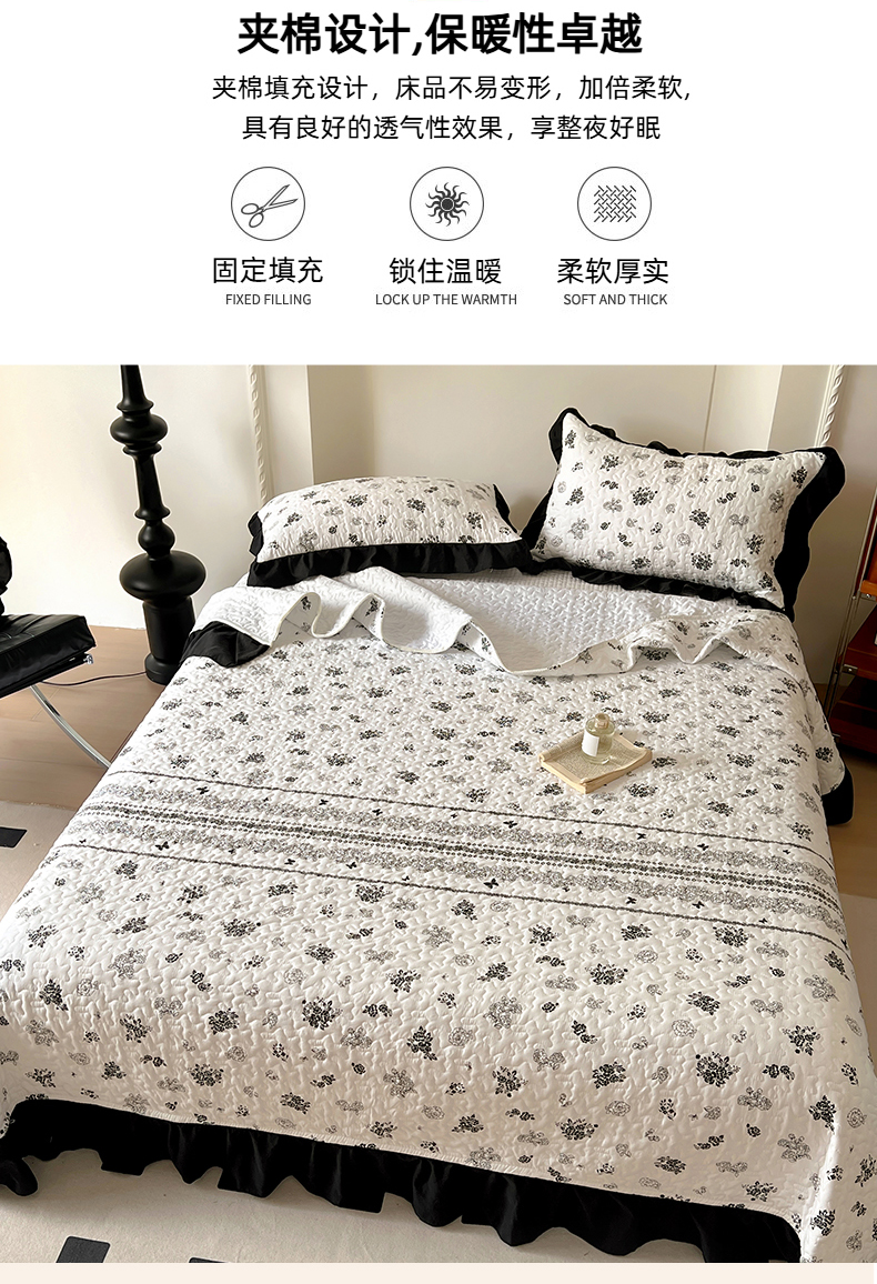当前位置: 91家纺网 > 商品网购 > 床品套件 > 四件套 > 化纤普通四件套 > 韩秀家纺 2025新款 四季跑量款花边夹棉加厚水洗棉泡泡棉糯感印花韩版床盖四件套 赫本花园