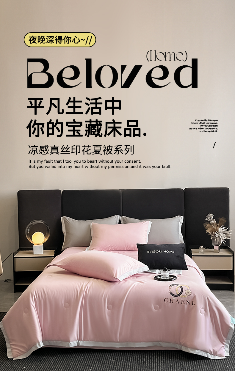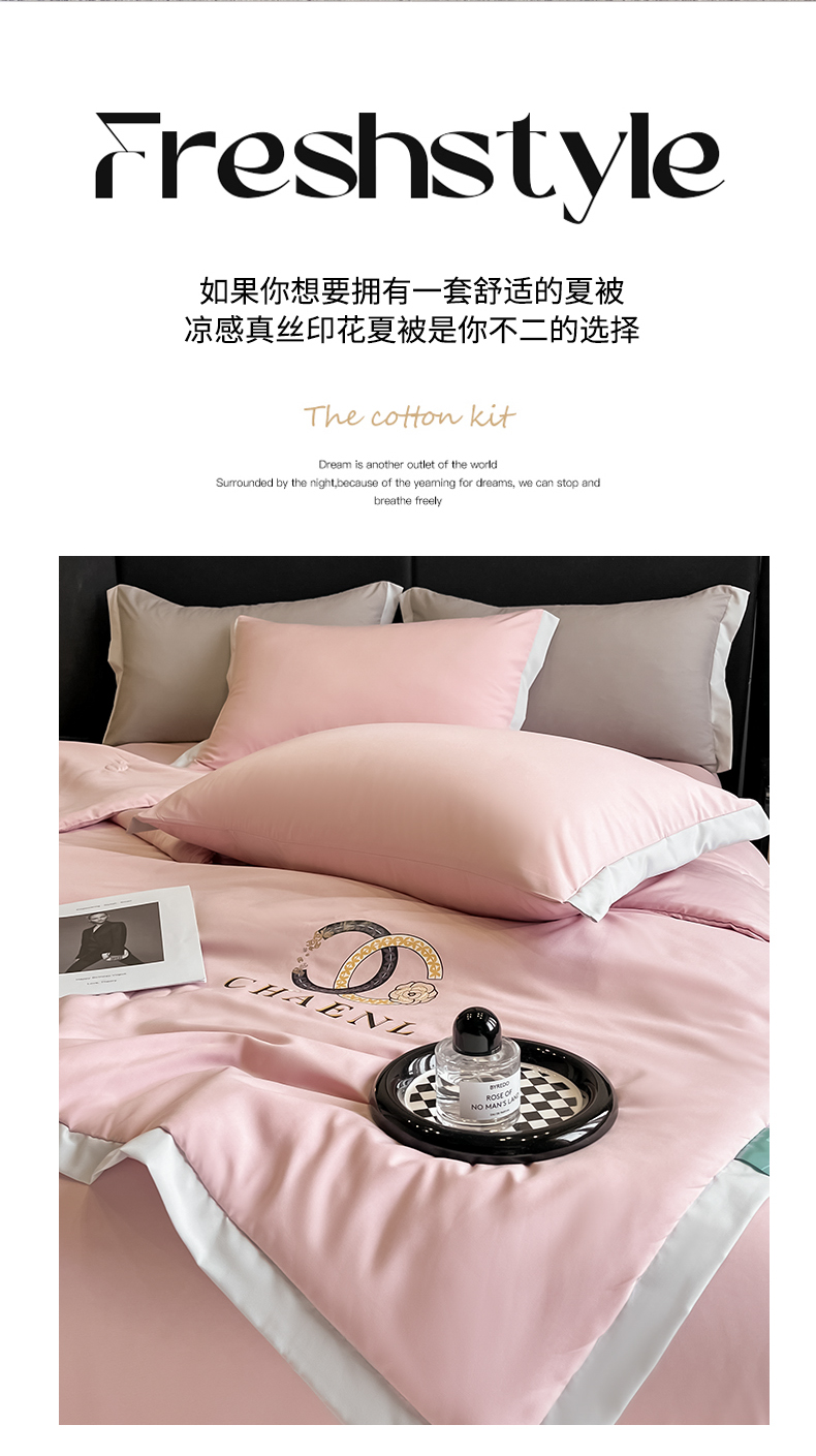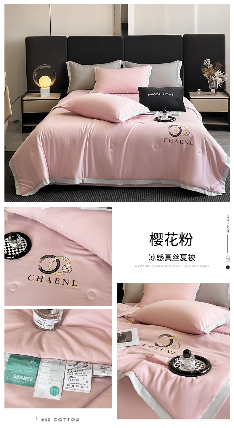 昊翔家纺 2025新款凉感真丝印花夏被系列 樱花粉