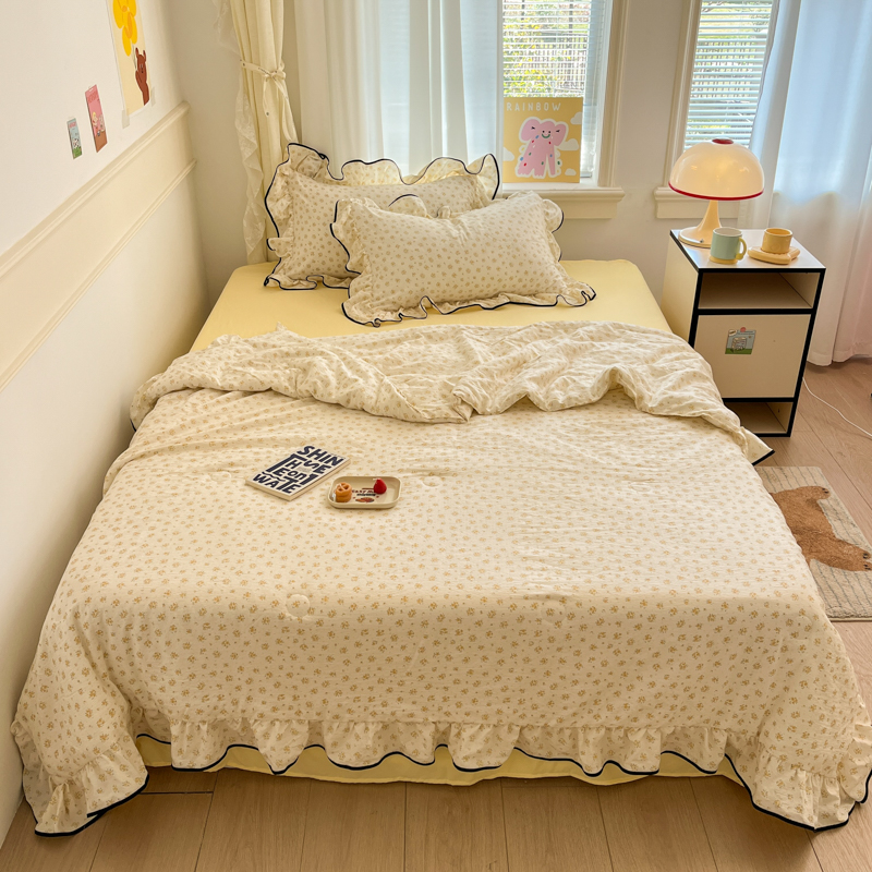欧尚 2025新款细黑边夏被床单床盖三件套 月光女神