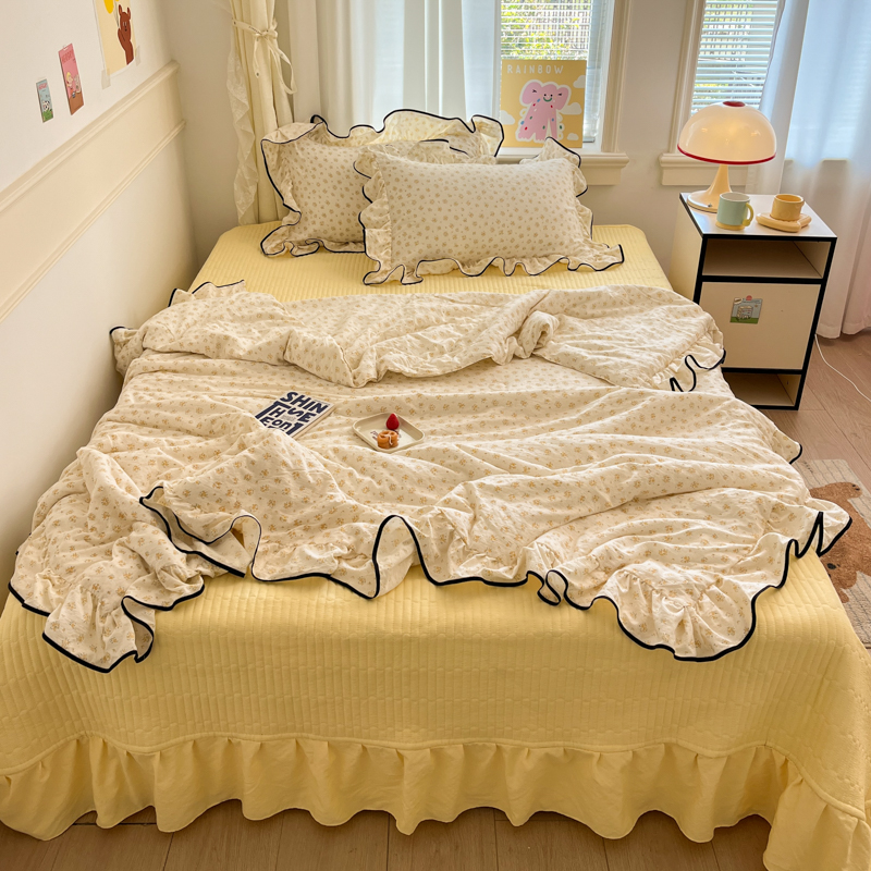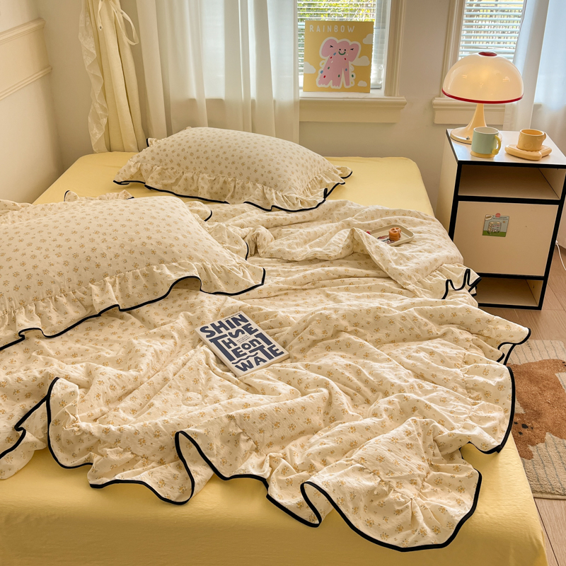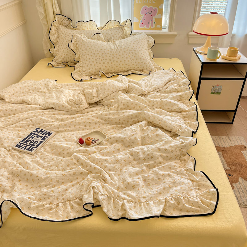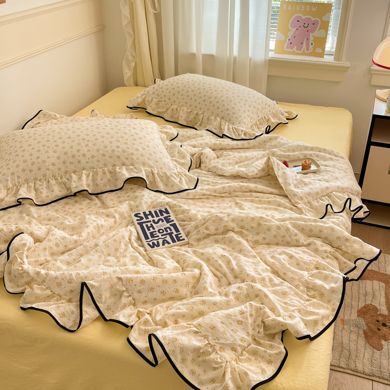 商品名称:欧尚 2025新款细黑边夏被床单床盖三件套 月光女神