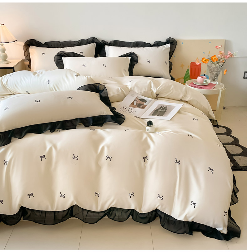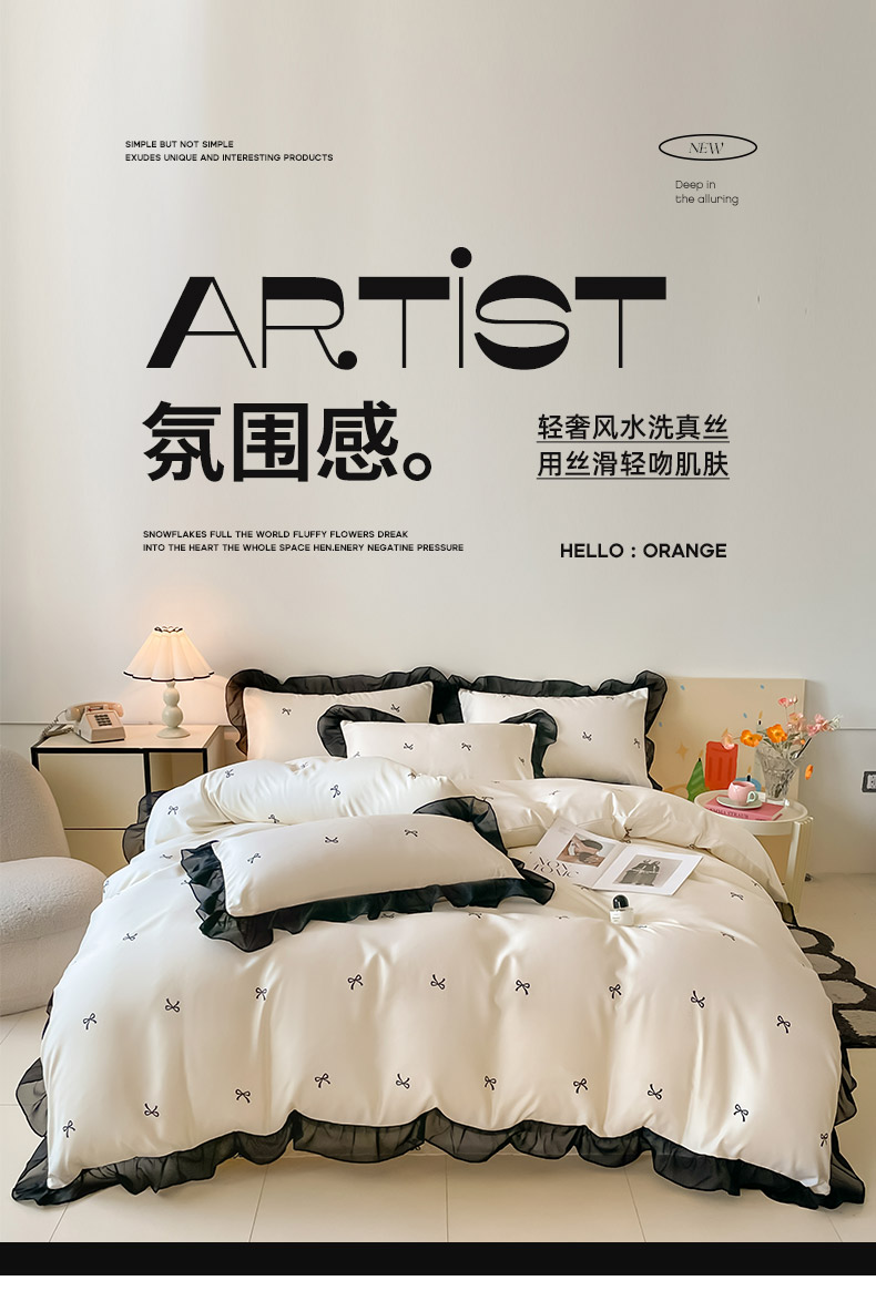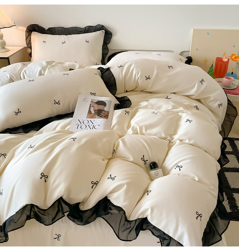 绒世界 2025新款小清新美拉德水洗冰丝套件四件套 蝴蝶结