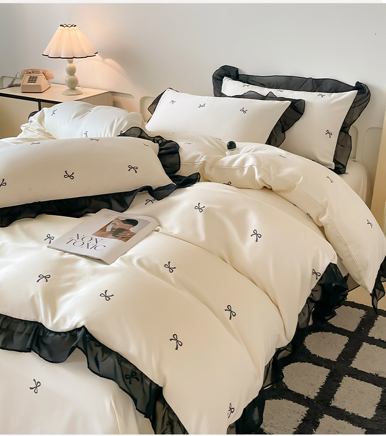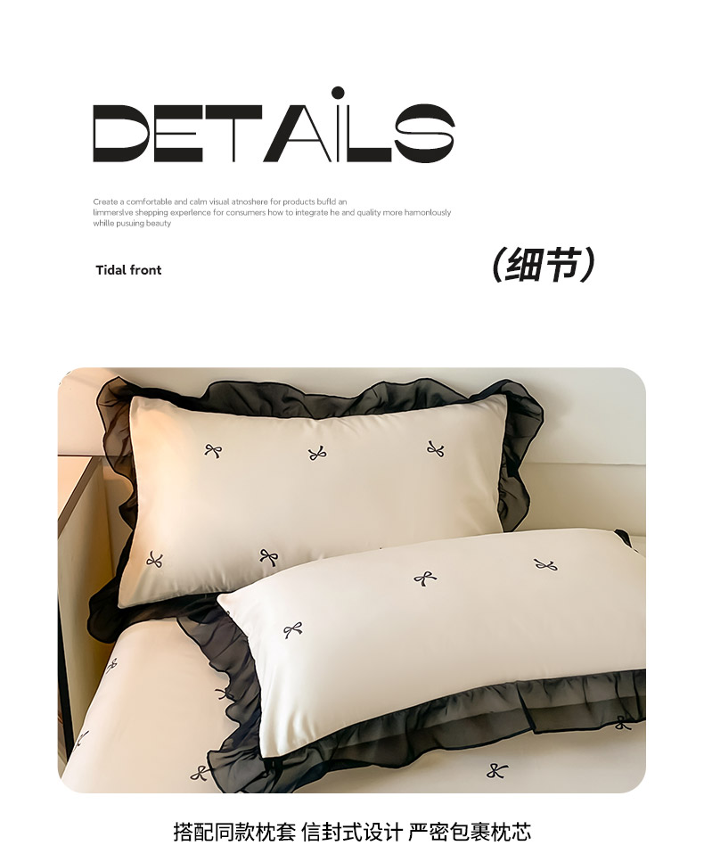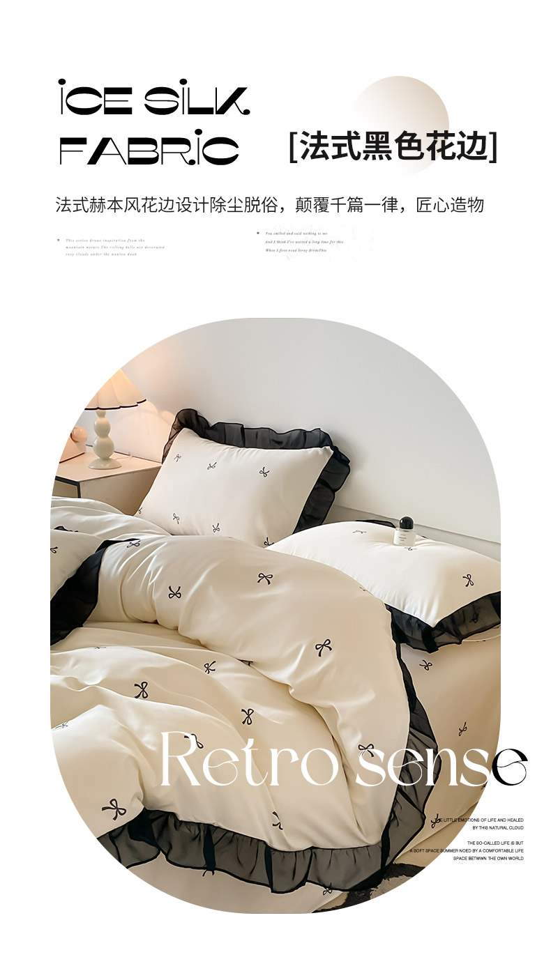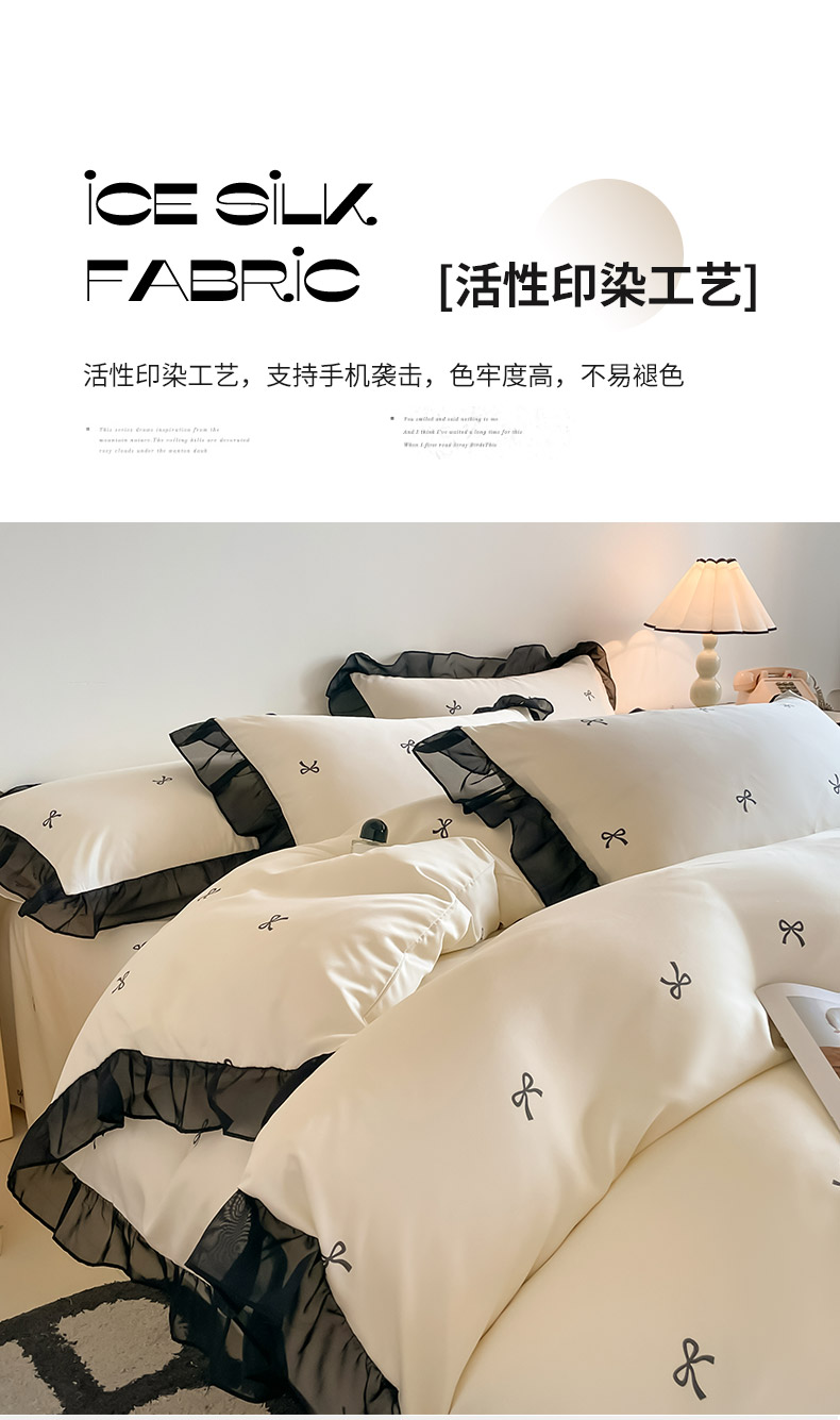 商品名称:绒世界 2025新款小清新美拉德水洗冰丝套件四件套 蝴蝶结