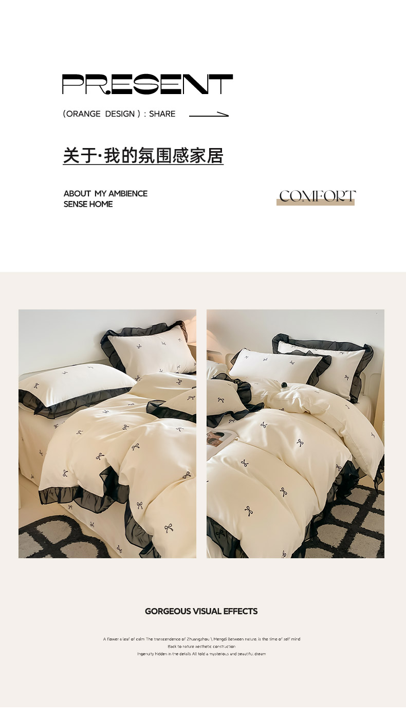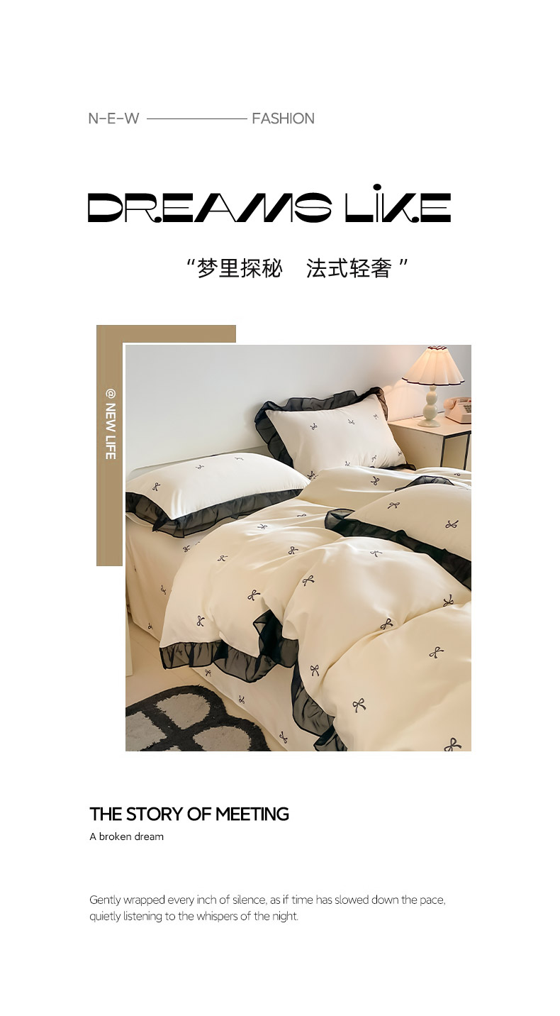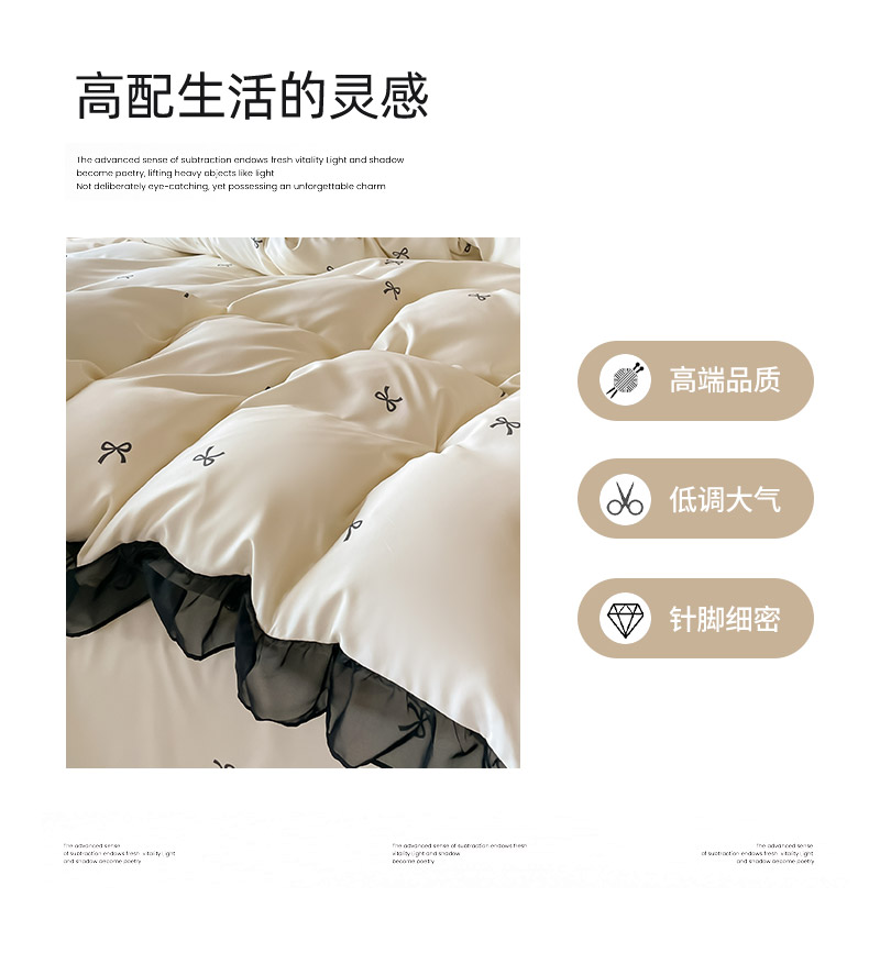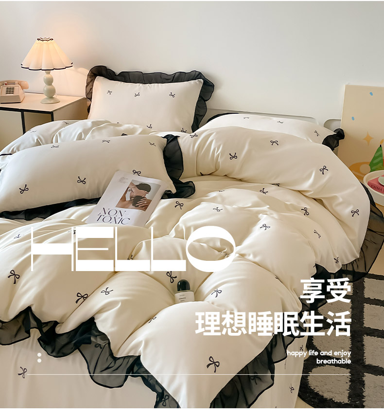 商品名称:绒世界 2025新款小清新美拉德水洗冰丝套件四件套 蝴蝶结
