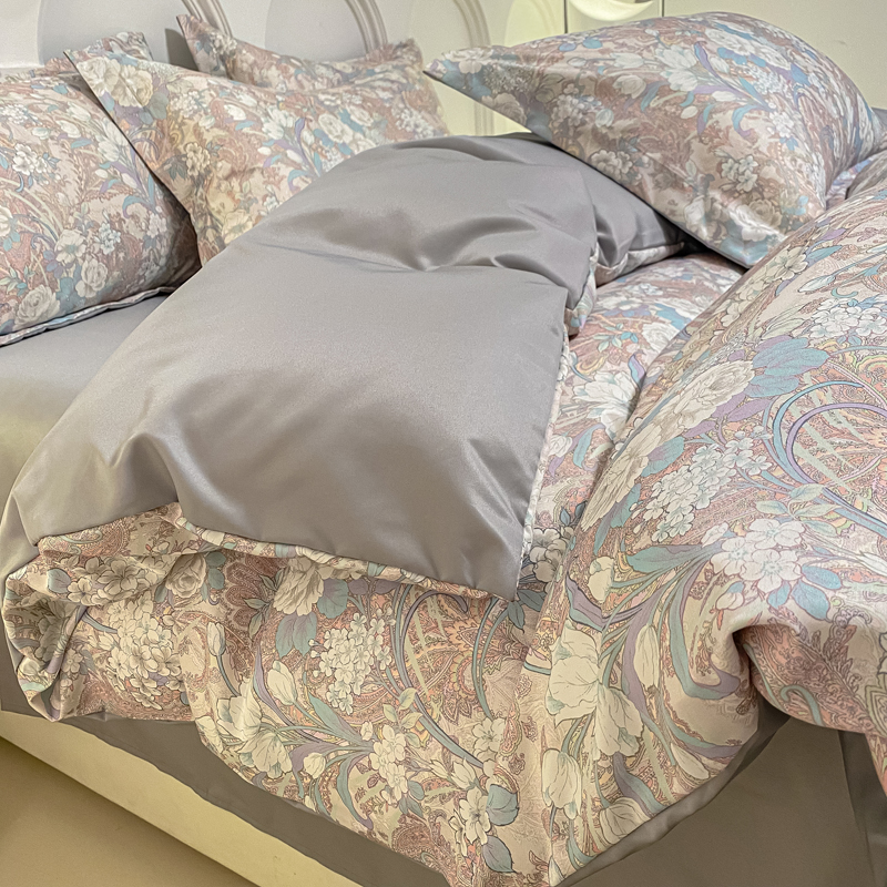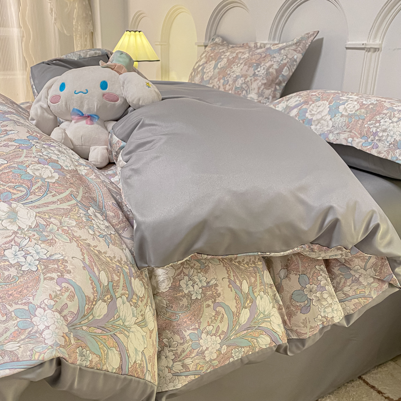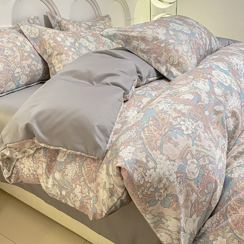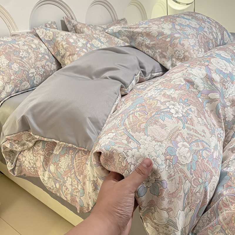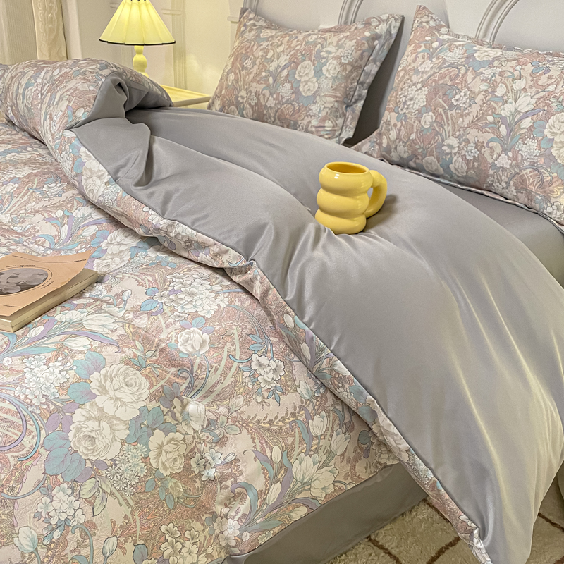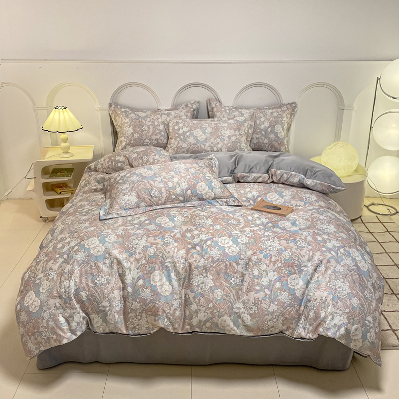 商品名称:2025新款水洗冰丝美式数码印花四件套轻奢时尚北欧风床上用品学生宿舍三四件套 娇之恋