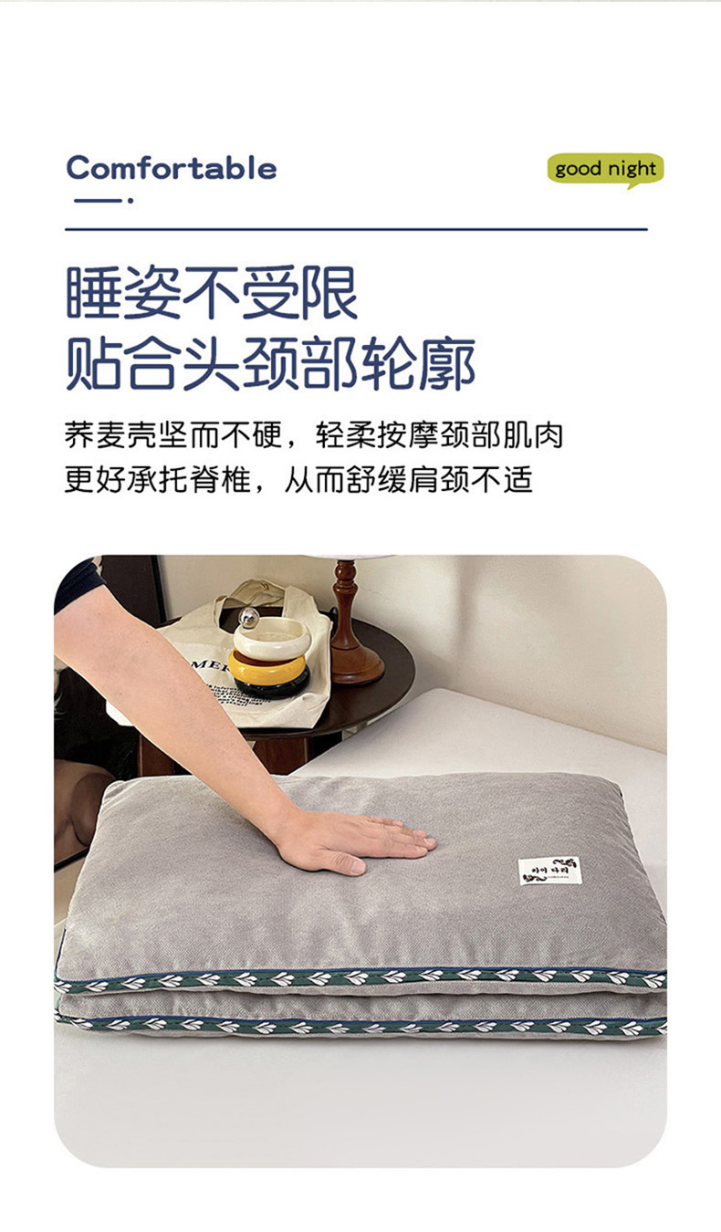商品名称:卓昌枕芯 2025新款舒适清爽透气麻绒荞麦枕头枕芯 麻绒荞麦枕-浅灰