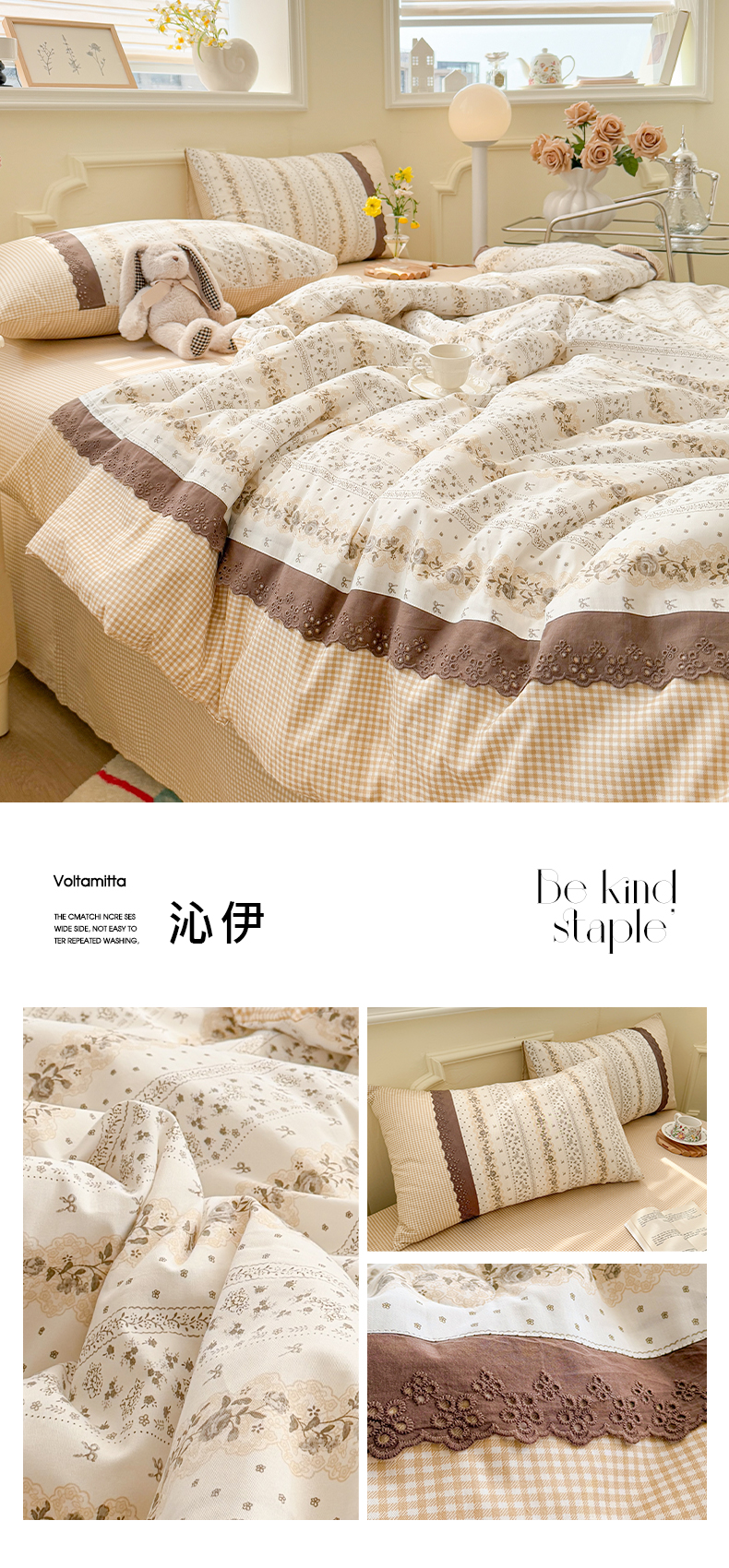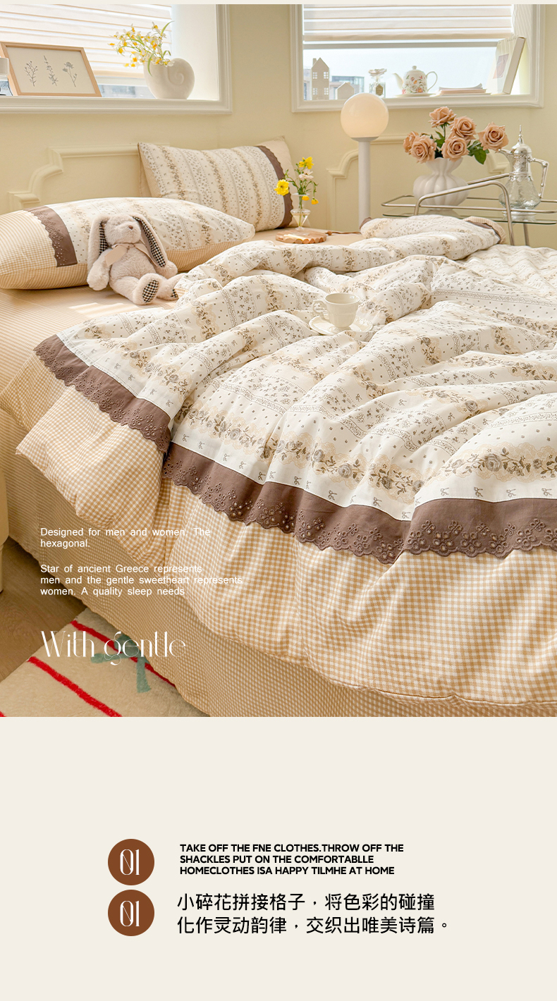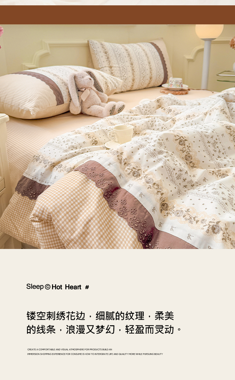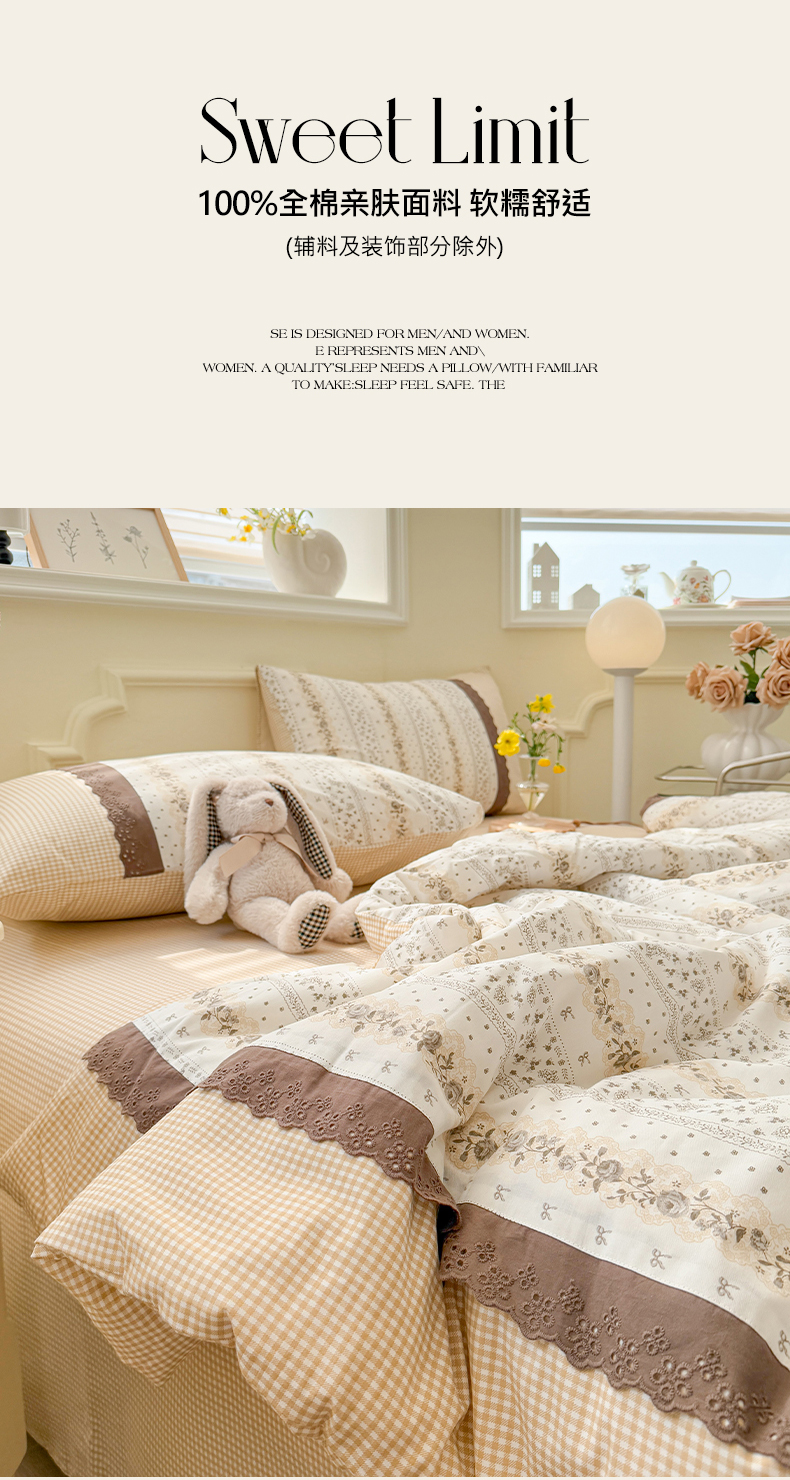 (总)安莱生活 2026年新品全棉纯棉小碎花刺绣花边款四件套-小碎花系列,花漾粉,花梦紫,凯特花园,漫语花,泡芙花园