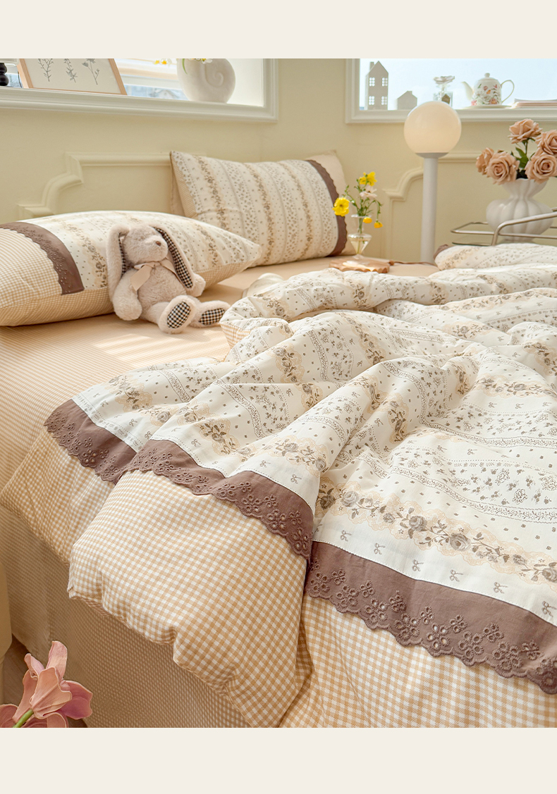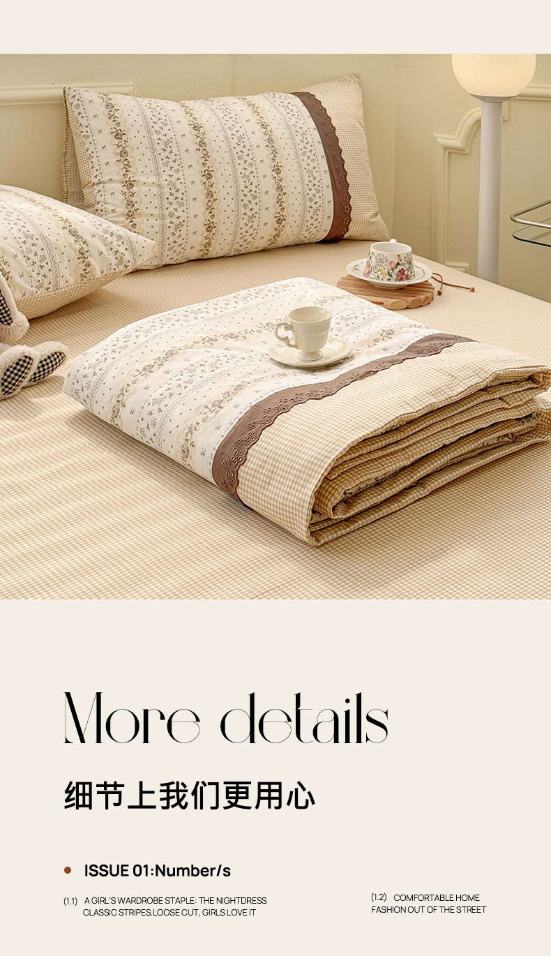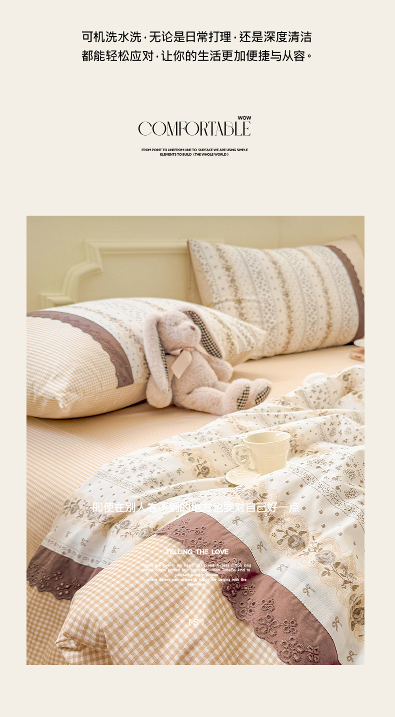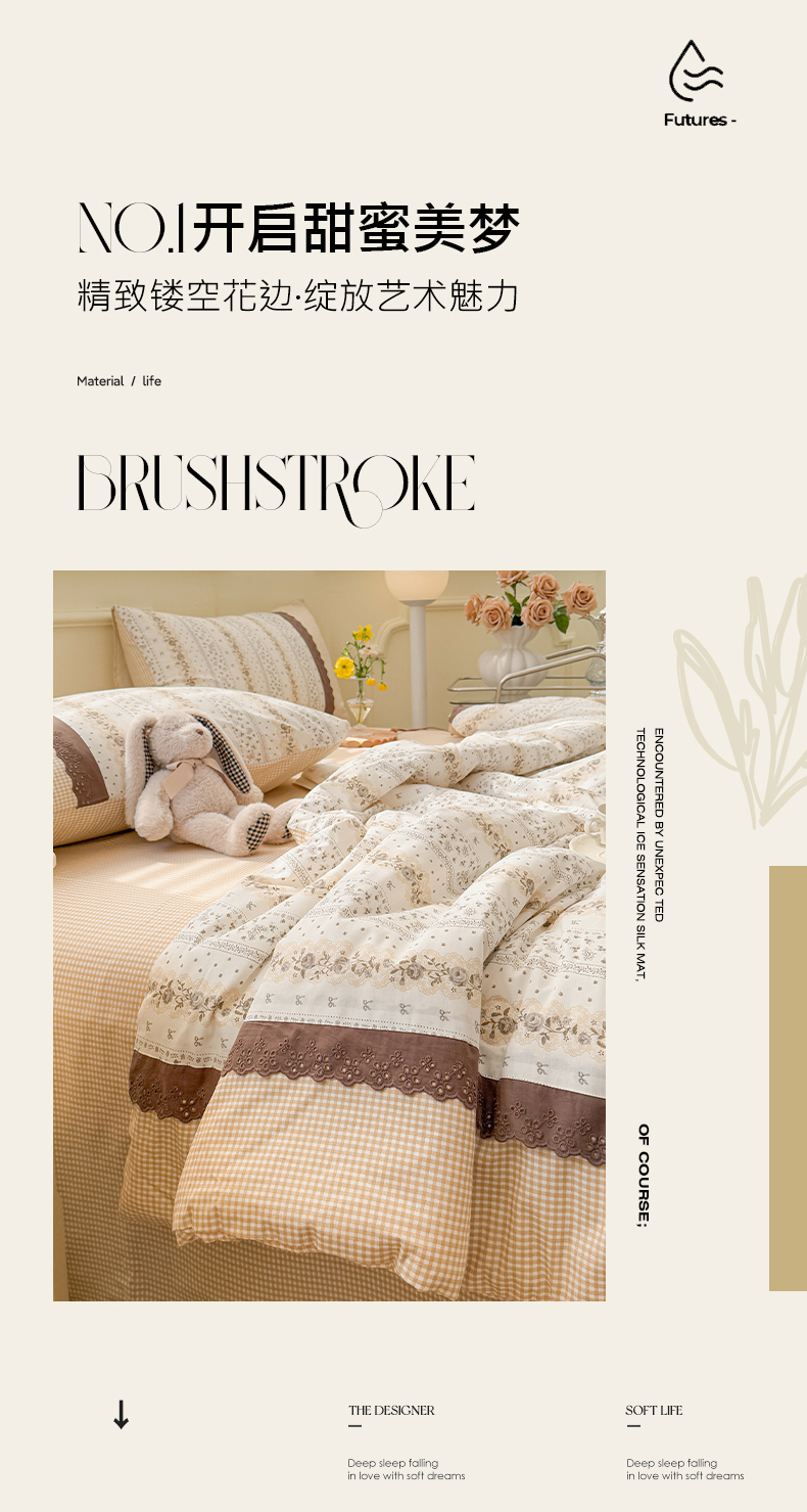 (总)安莱生活 2026年新品全棉纯棉小碎花刺绣花边款四件套-小碎花系列,花漾粉,花梦紫,凯特花园,漫语花,泡芙花园