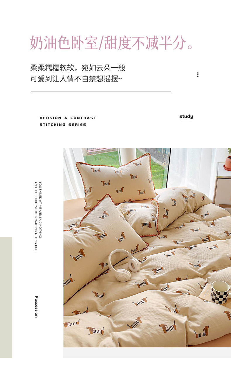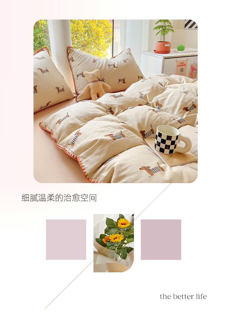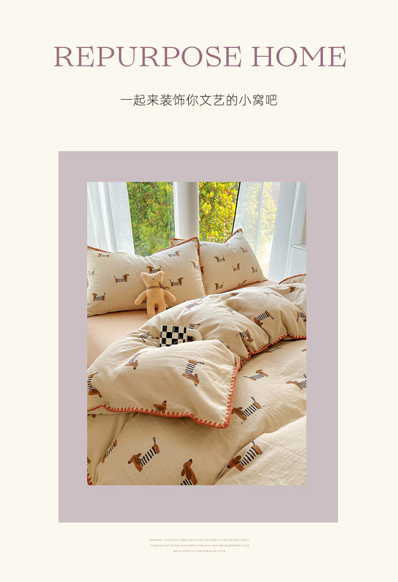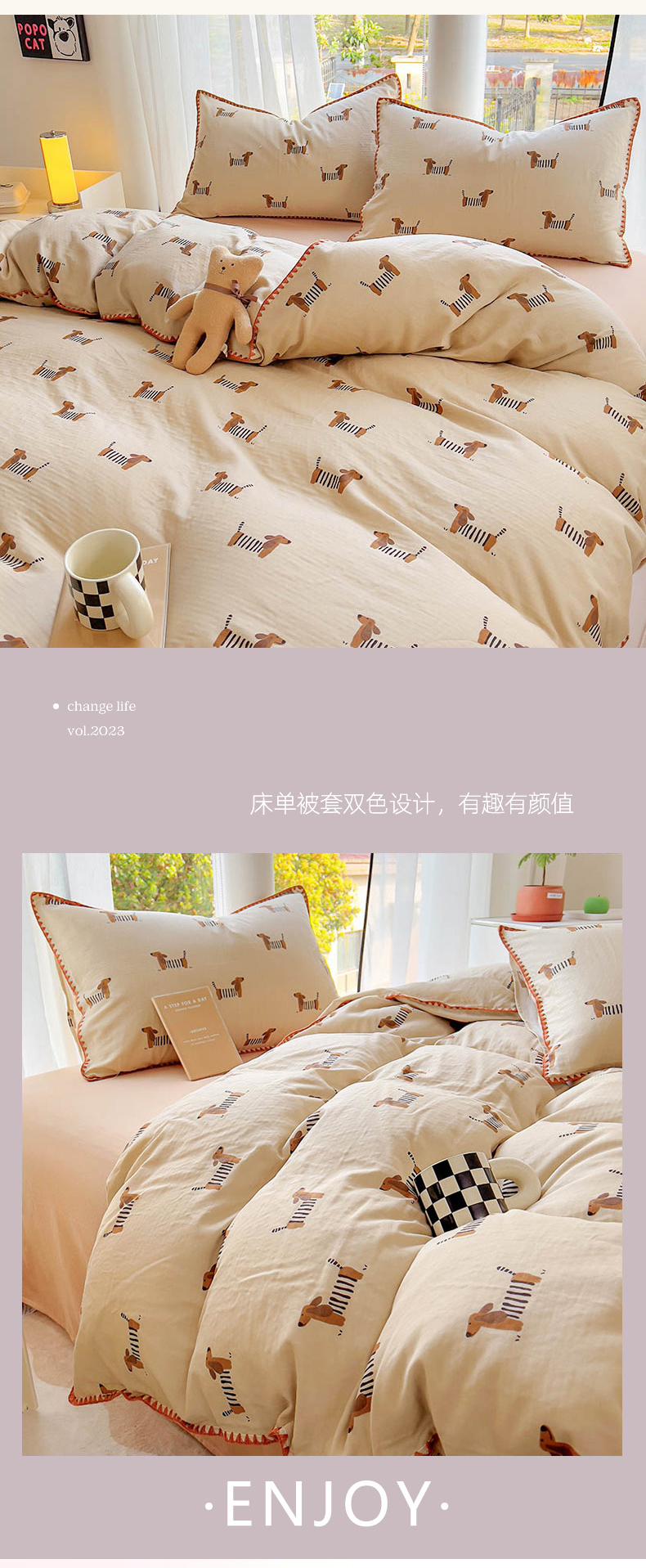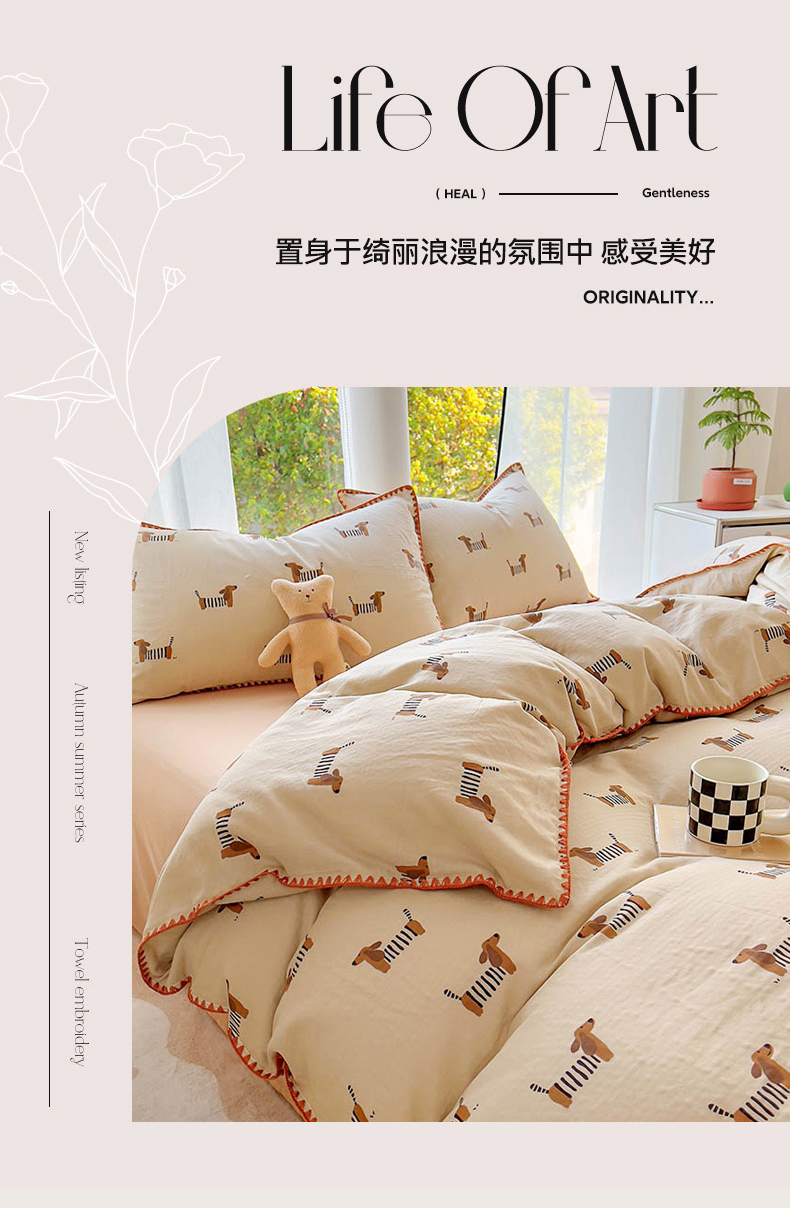 当前位置: 91家纺网 > 商品网购 > 床品套件 > 四件套 > 双层纱四件套 > (提供买家秀 爆款花型 不断货)2025新款A类全棉双层纱四件套 腊肠狗