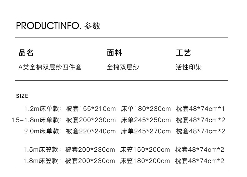 1.8m床笠四件套被套200x230 | ¥195.00 |