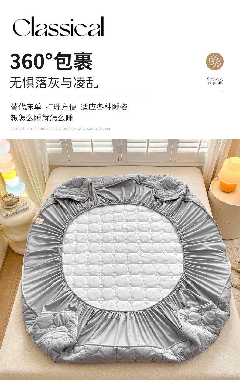 万盛家纺 2025新款夹棉恐龙刺绣床笠 恐龙-方格 灰
