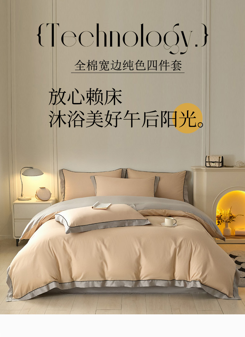 (总)万盛家纺 2025秋冬新品德芙绒宽边轻奢四件套,晨曦红,豆沙,橄榄绿,荷叶绿,咖灰,蓝灰,砖红