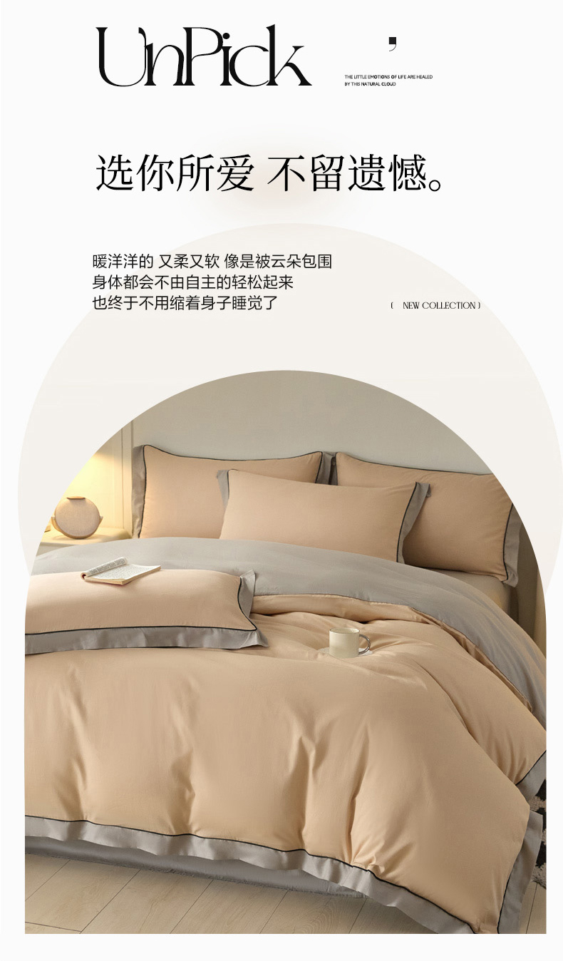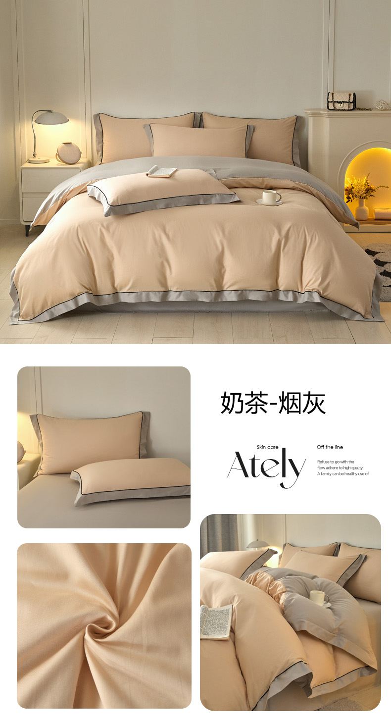 (总)万盛家纺 2025新款230克全消光牛奶绒拼色四件套,灰兰-星暖咖,简昔绿-星暖咖,奶白-抹茶绿,星暖咖-烟灰,星柚粉-星暖咖,烟灰-星柚粉