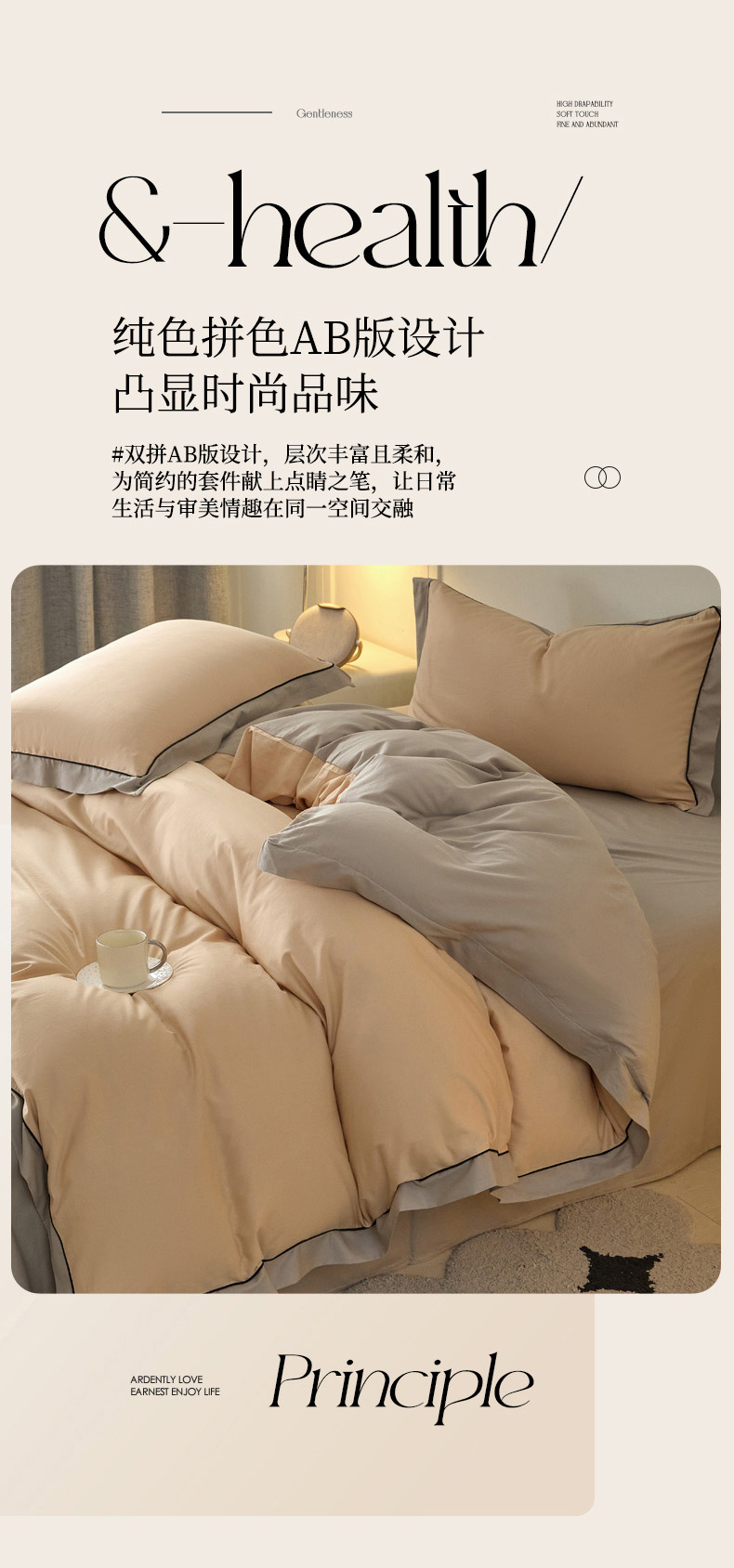 (总)万盛家纺 2025新款全棉水洗棉拼色四件套,宾利蓝拼淡咖,灰拼浅咖,抹茶绿拼淡咖,浅咖拼软桃,浅紫拼灰,软桃拼冰心,烟粉拼灰,夜色灰拼军绿