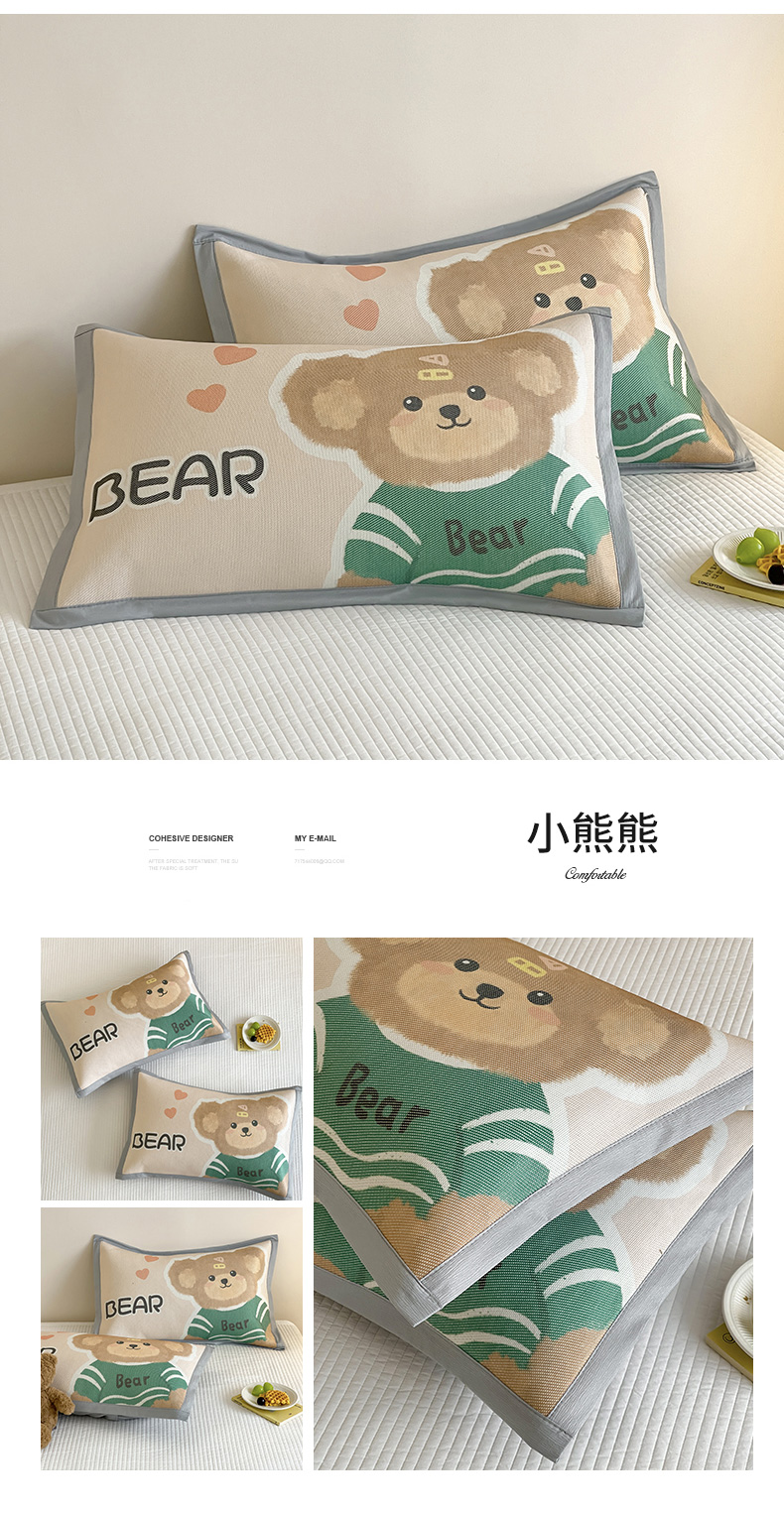 商品名称:安哆啦家纺 2025新款A类大版印花冰藤儿童幼儿园卡通萌宠系列凉席单枕套 小熊熊