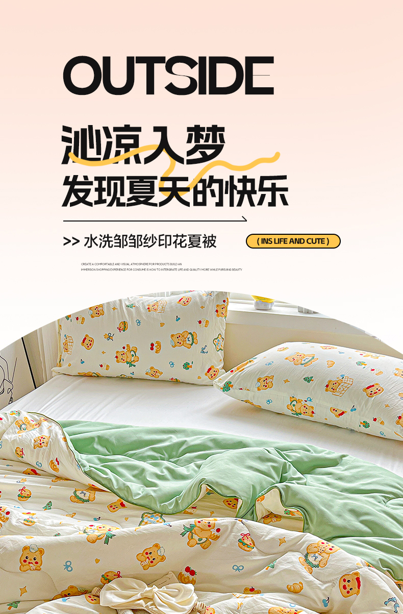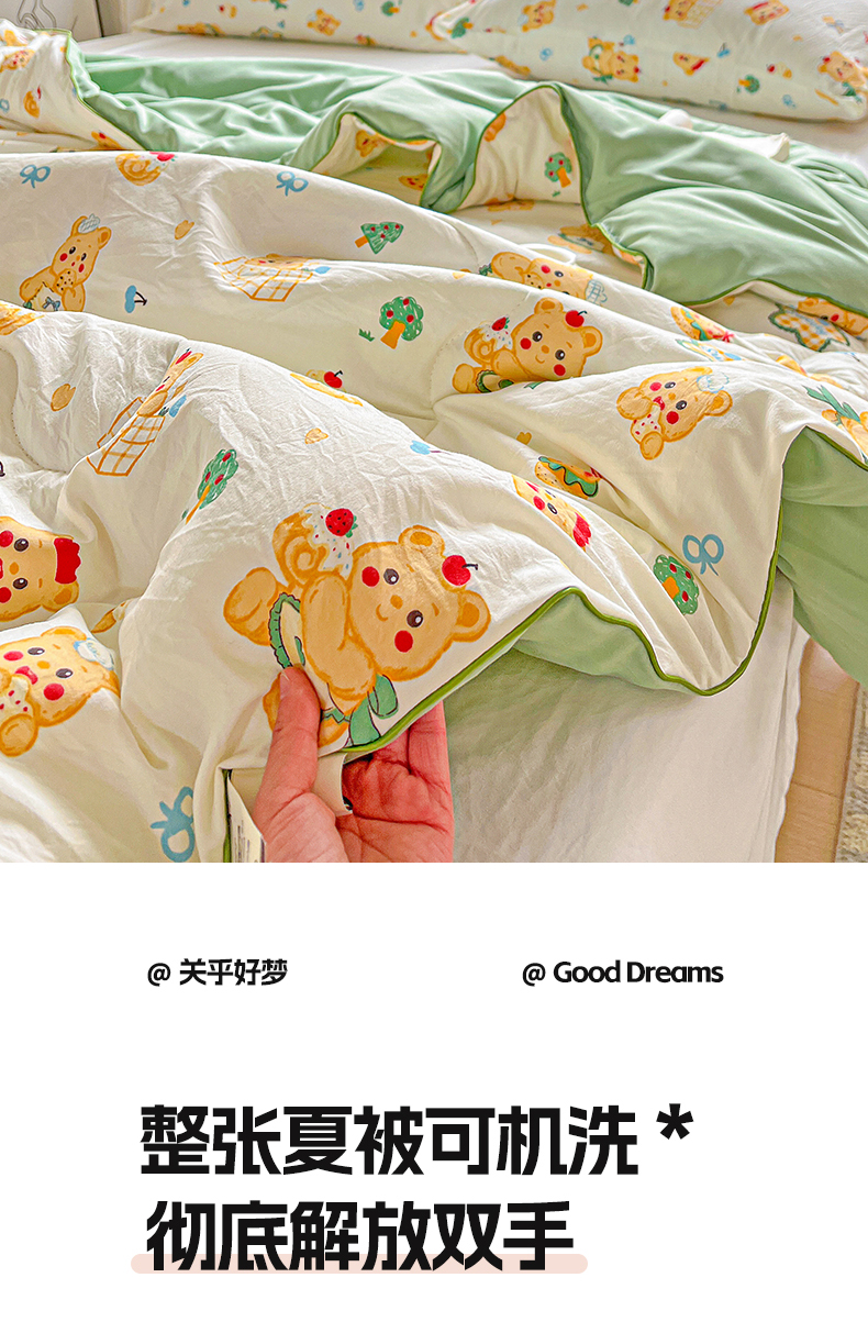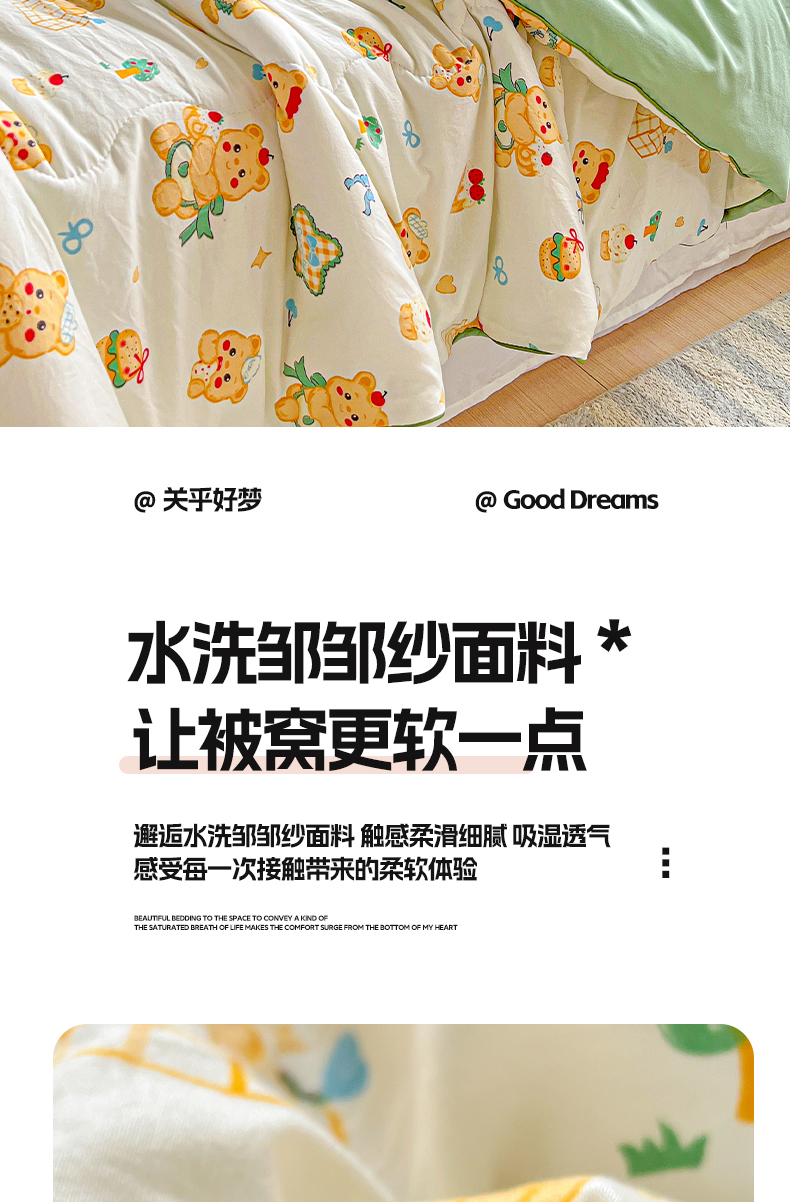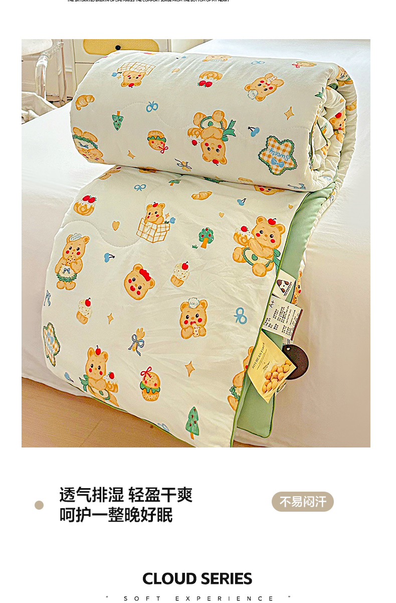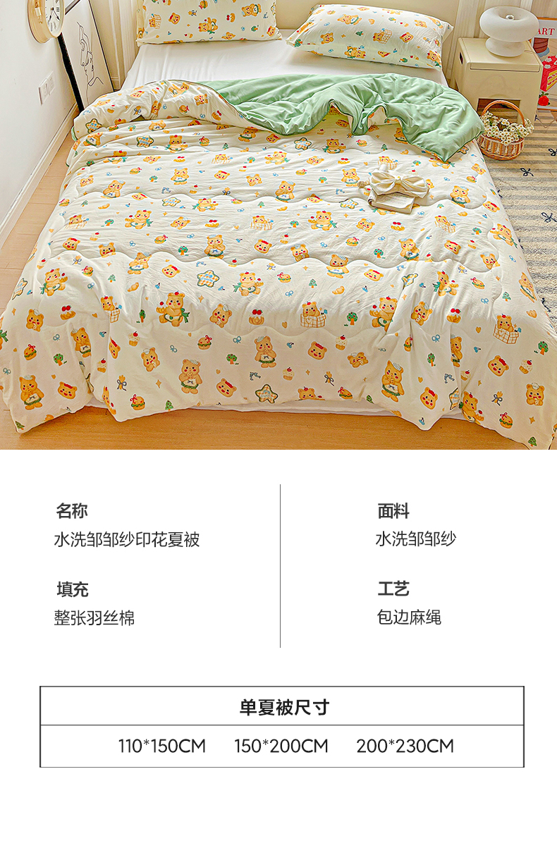 商品名称:玉海棠家纺 2025新款水洗皱皱纱印花夏被 被子被芯 吃饼干小熊