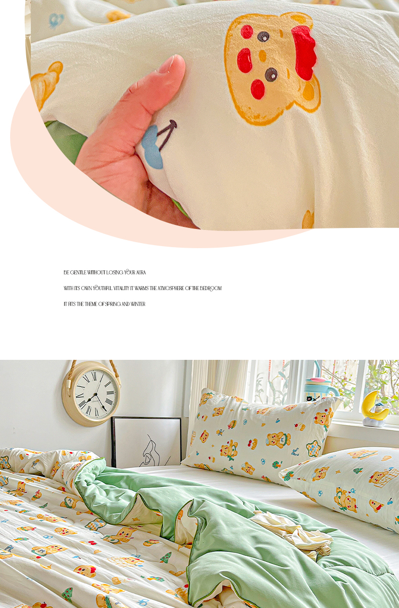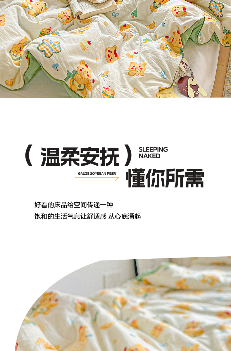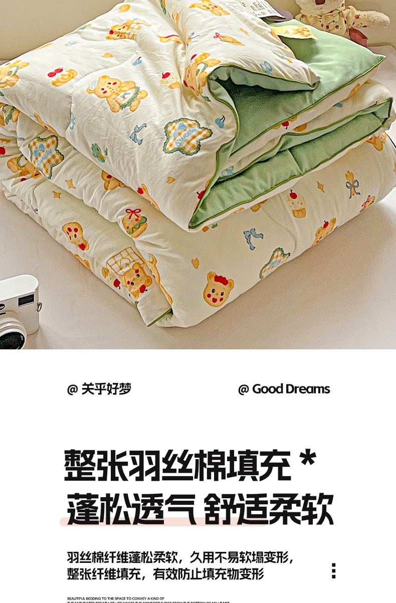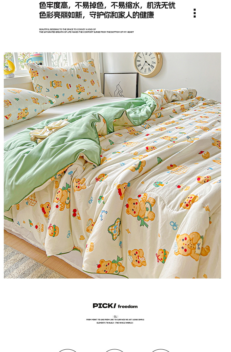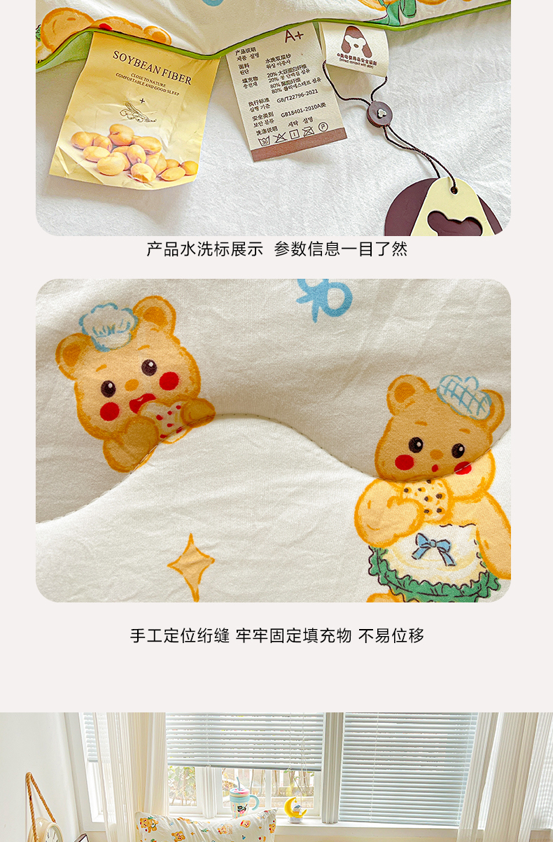 商品名称:玉海棠家纺 2025新款水洗皱皱纱印花夏被 被子被芯 吃饼干小熊