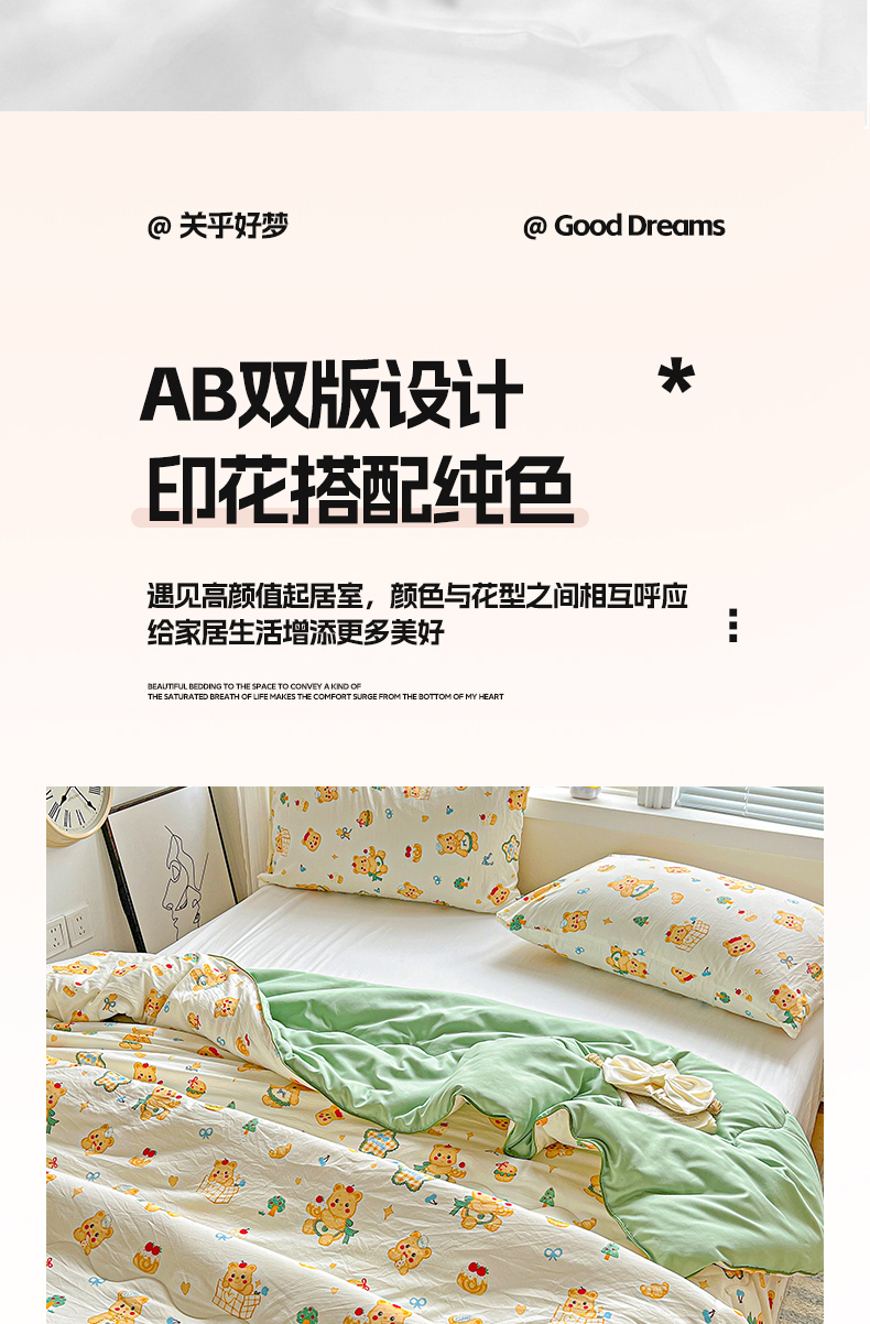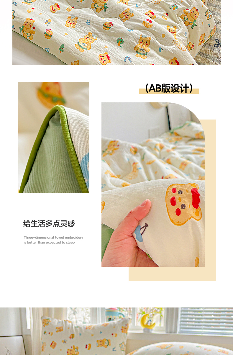 玉海棠家纺 2025新款水洗皱皱纱印花夏被 被子被芯 吃饼干小熊