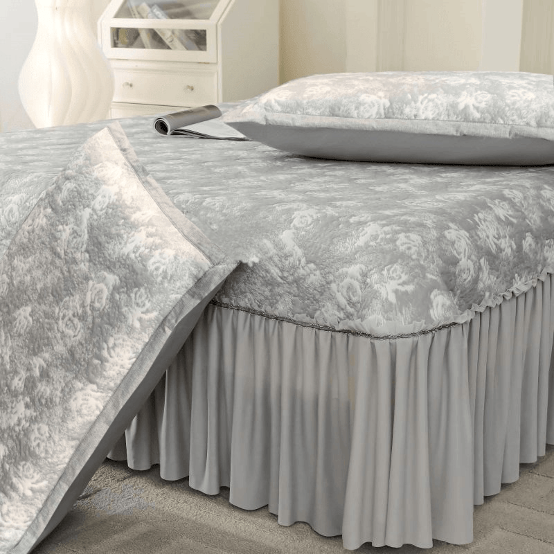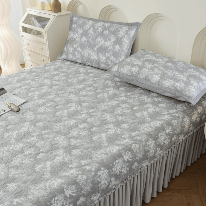 野马寝具跨境电商专供 2025新款玫瑰花床裙 灰