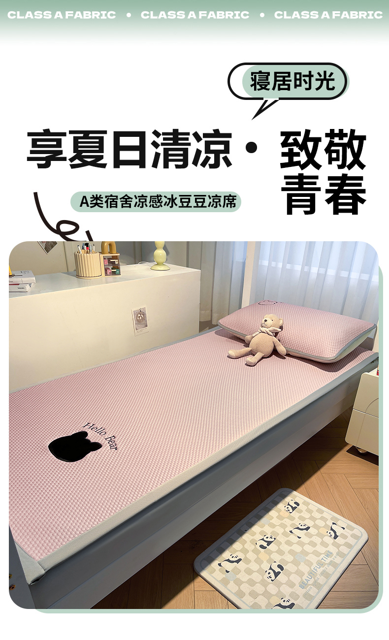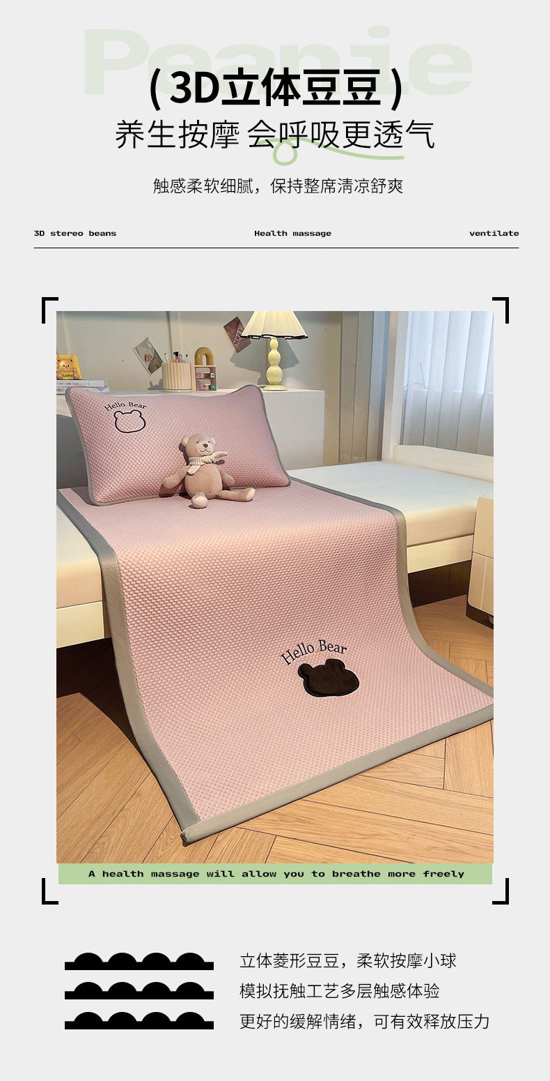 当前位置: 91家纺网 > 商品网购 > 床上用品 > 凉席 > 其他凉席 > 梵朴 2025新款凉感PE冰豆豆贴布绣凉席-学生床 八宝熊-粉