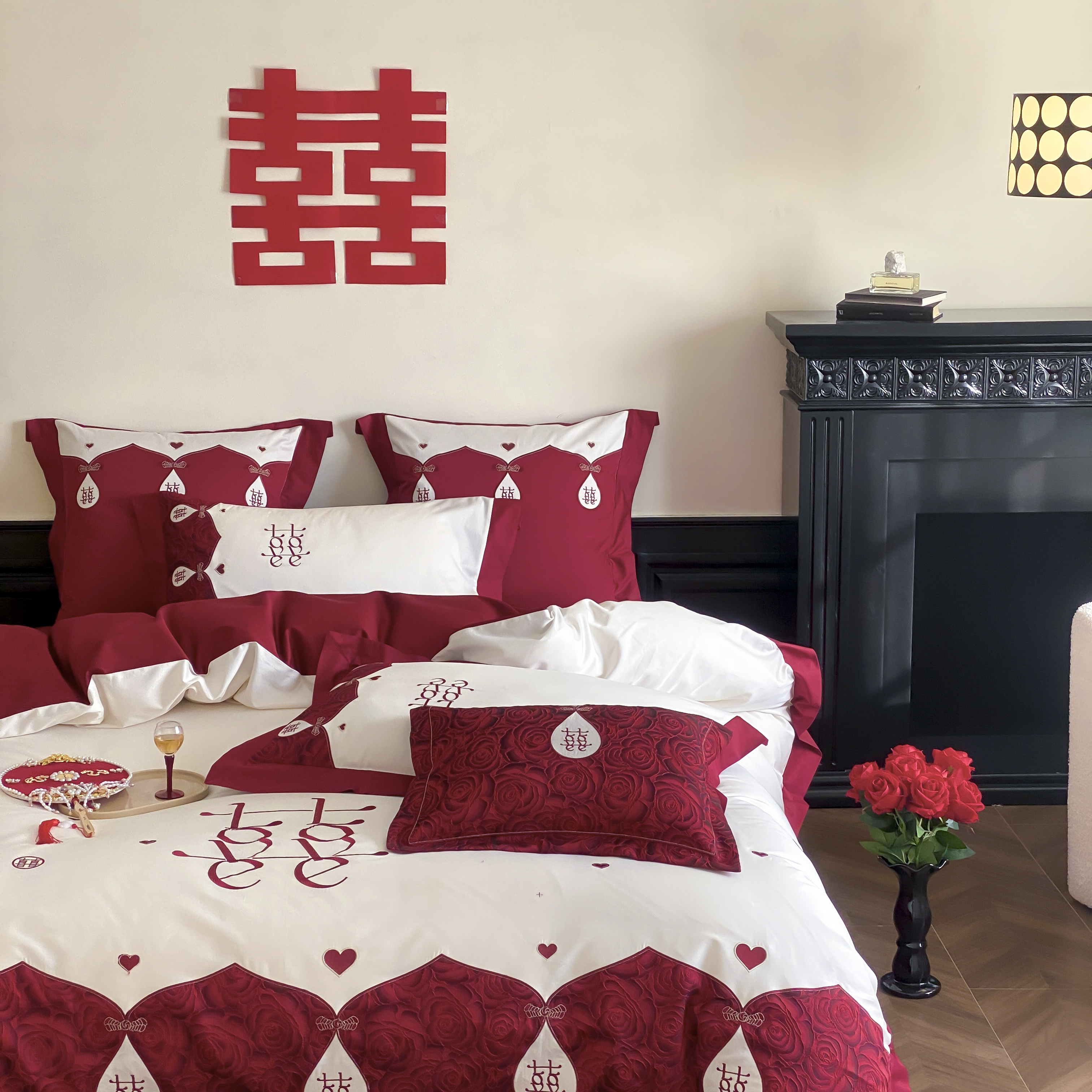 (总)江涞 2025新款婚庆长绒棉纯棉贴布绣四件套-锦心