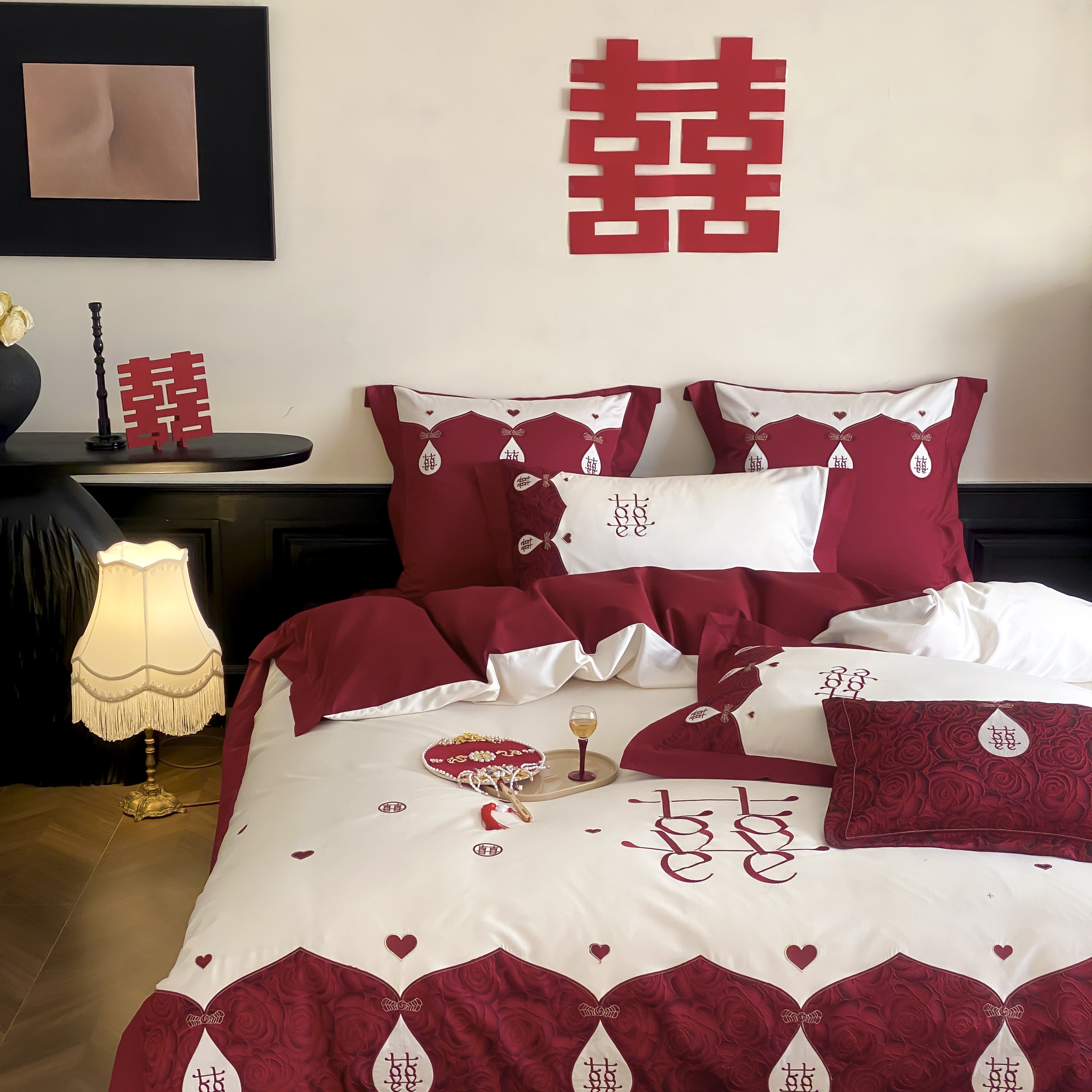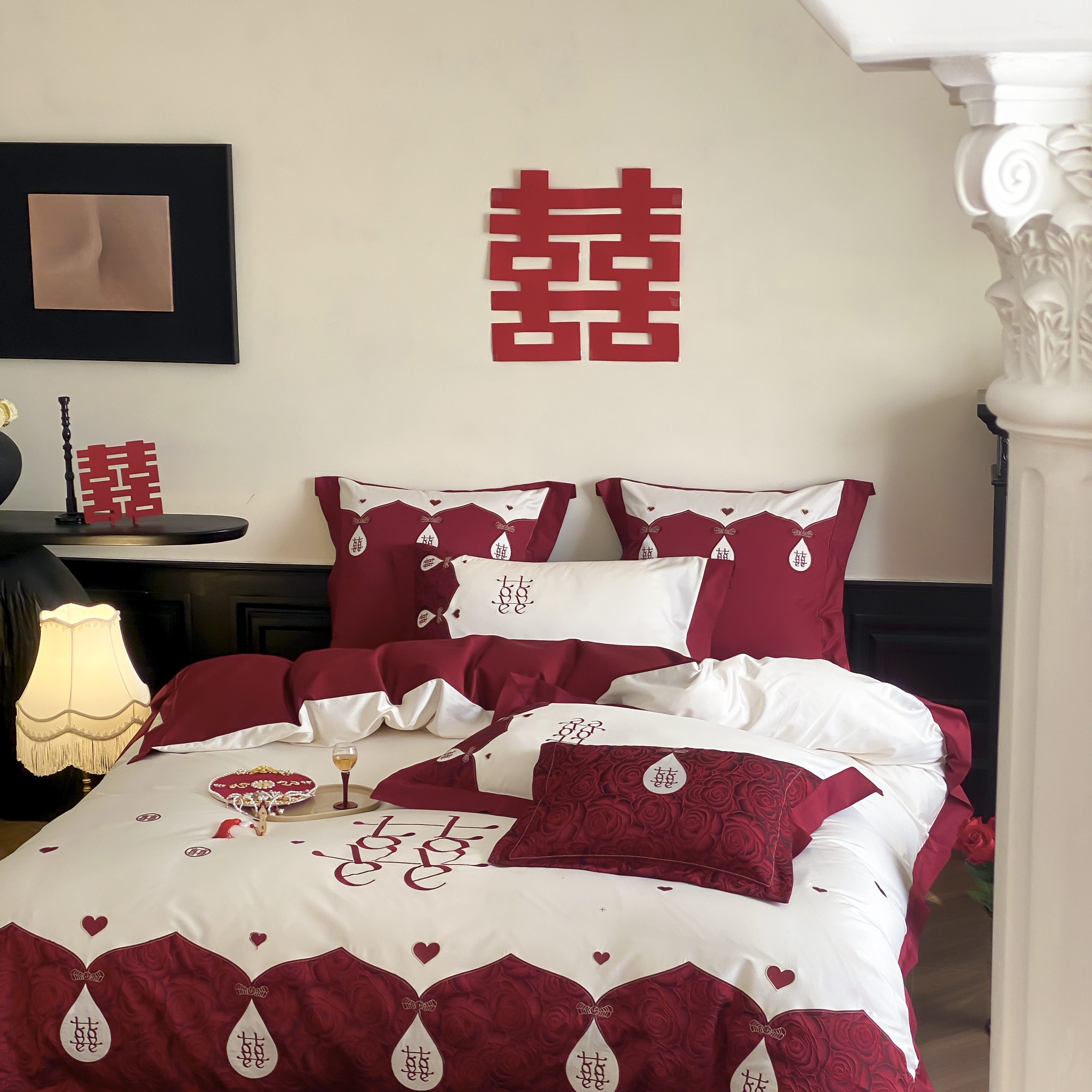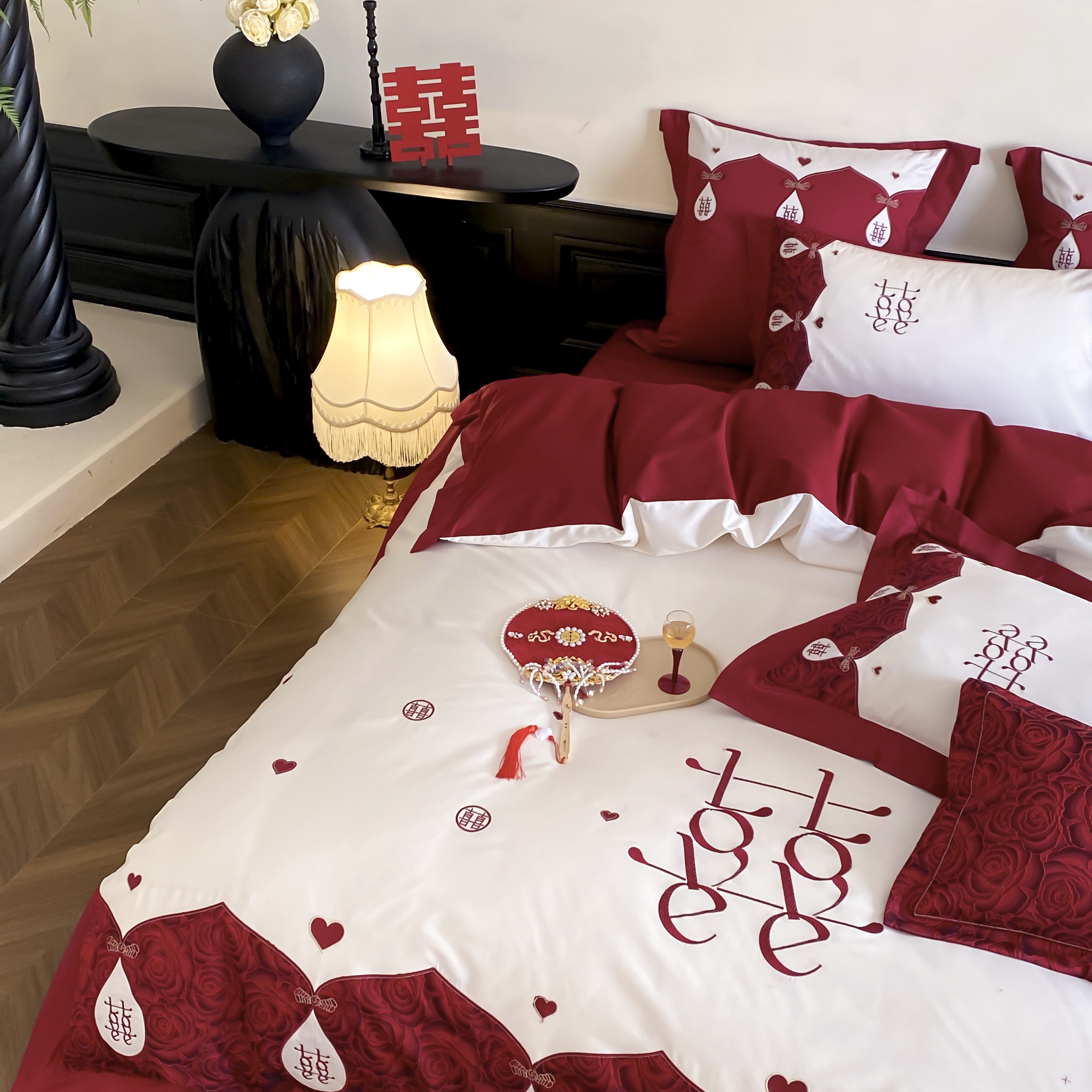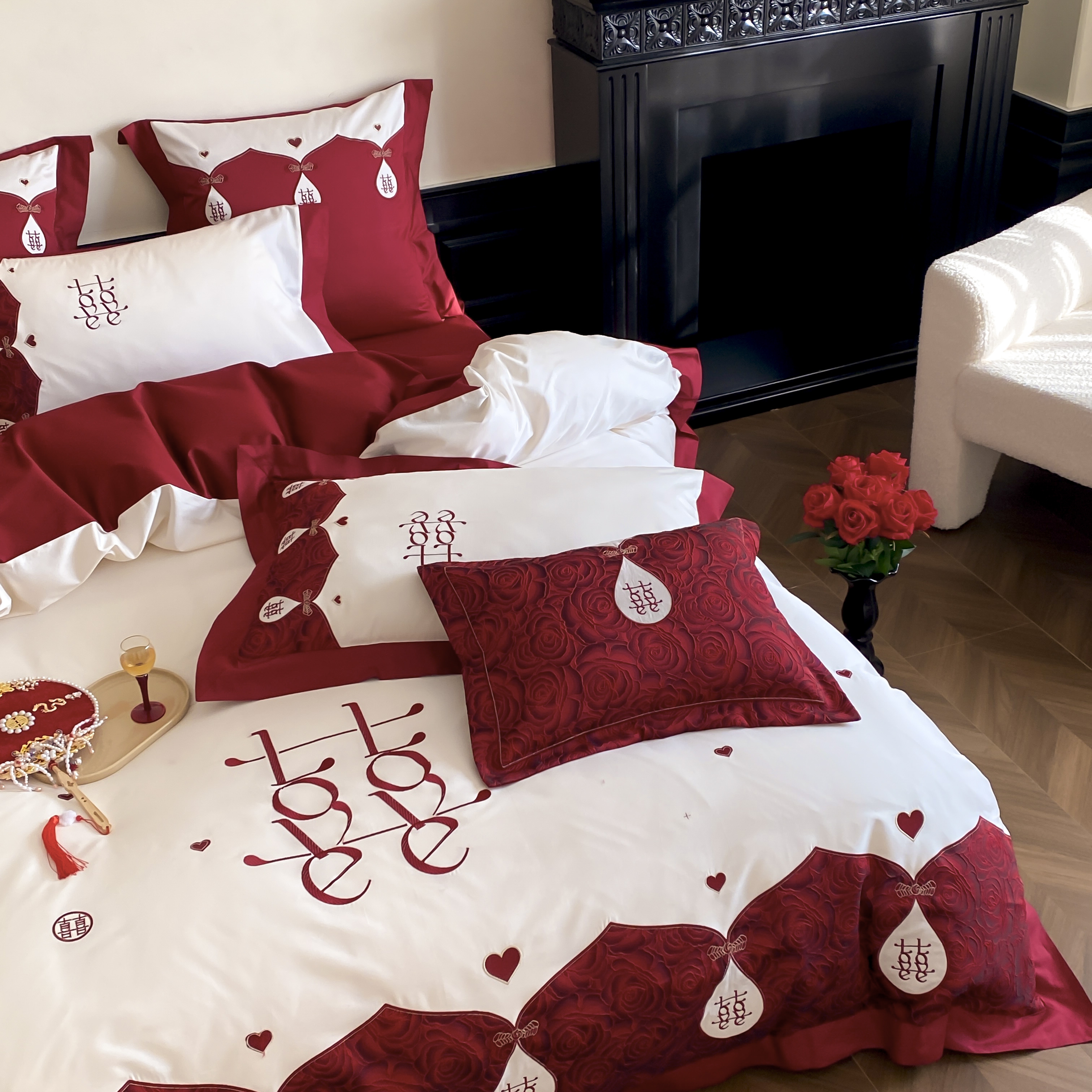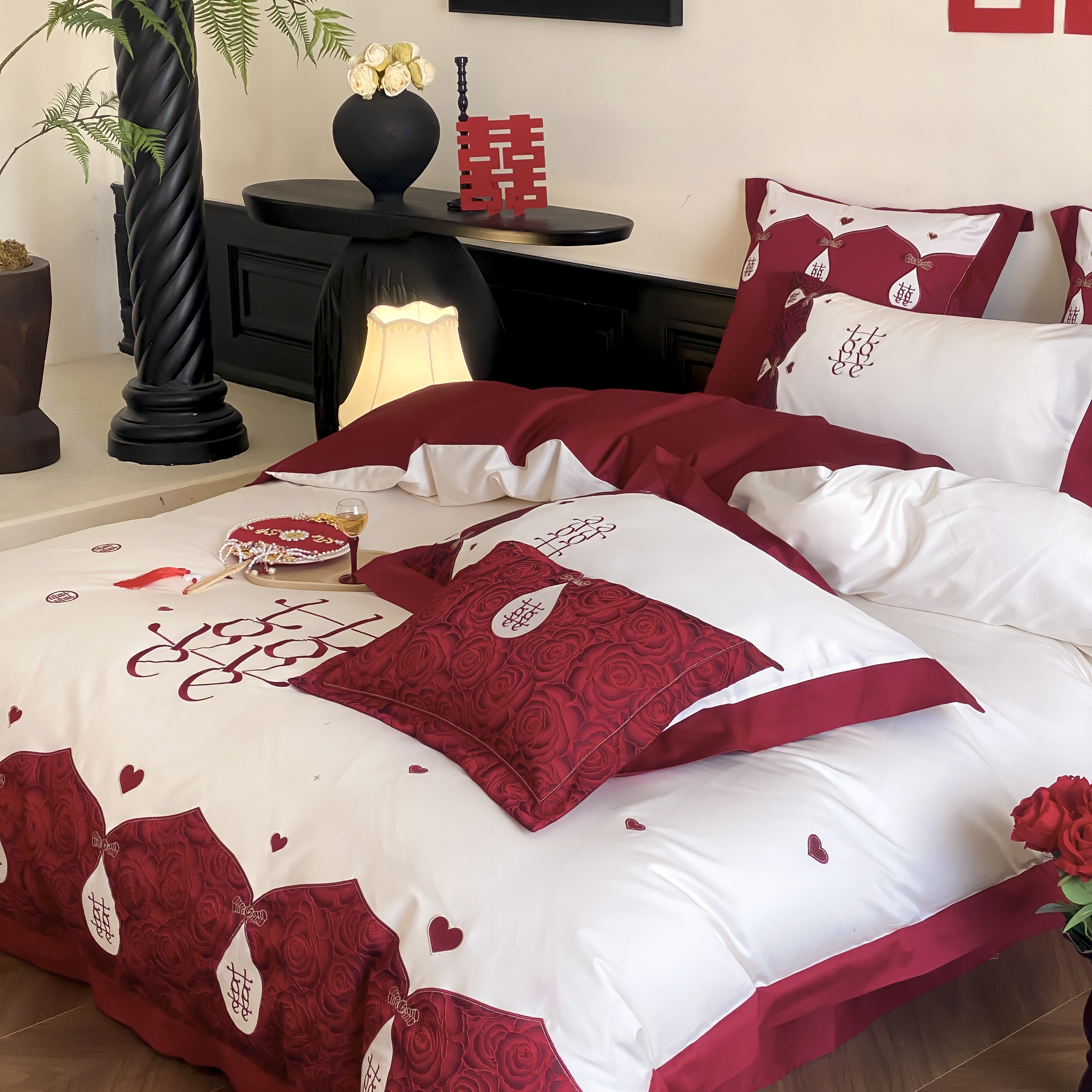 商品名称:(总)江涞 2025新款婚庆长绒棉纯棉贴布绣四件套-锦心