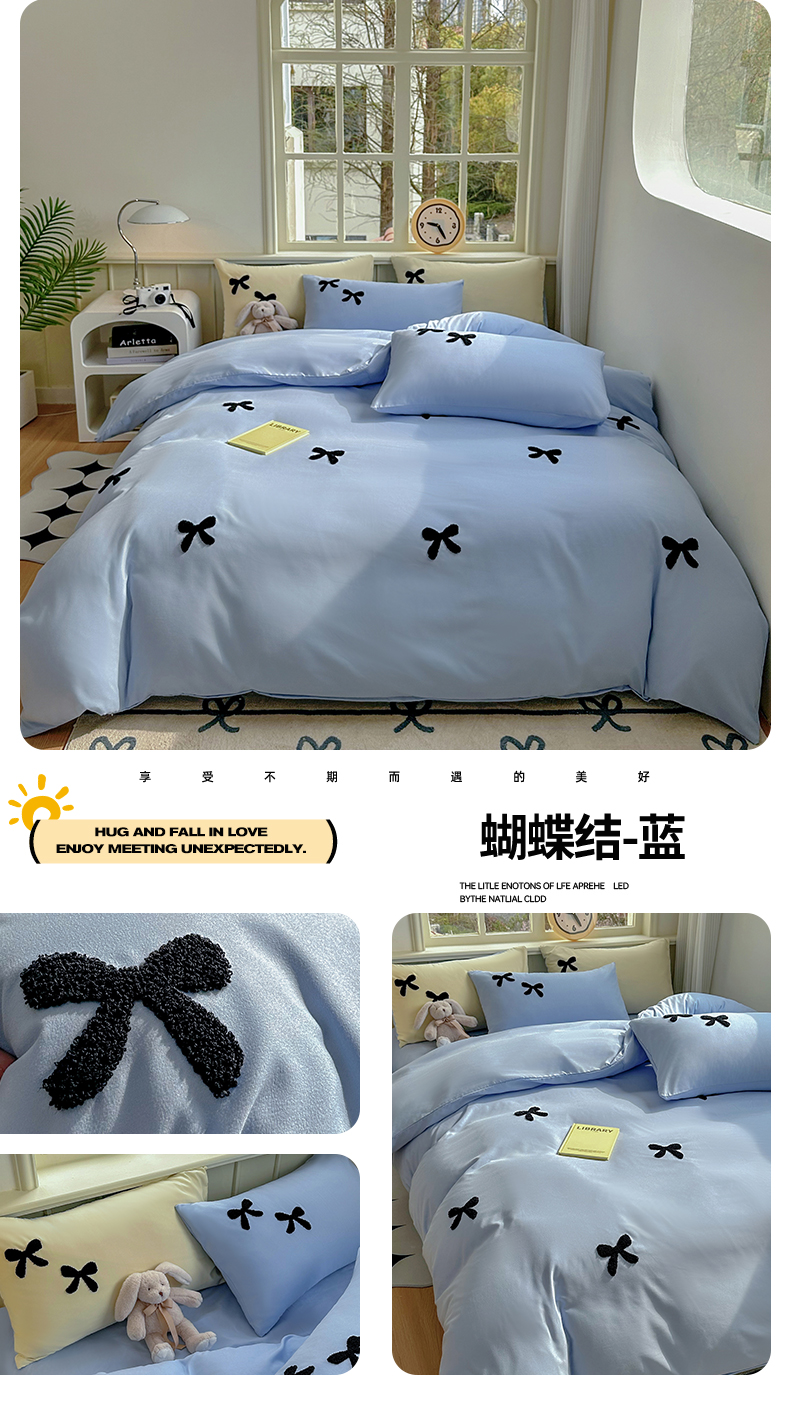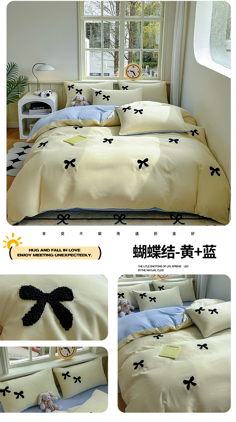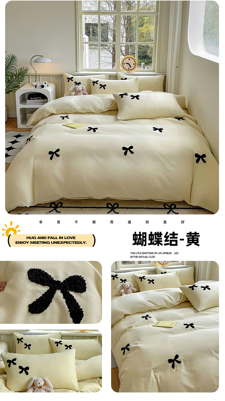 商品名称:(总)迪拜家纺 2025新款加厚水洗棉毛巾绣四件套-蝴蝶结