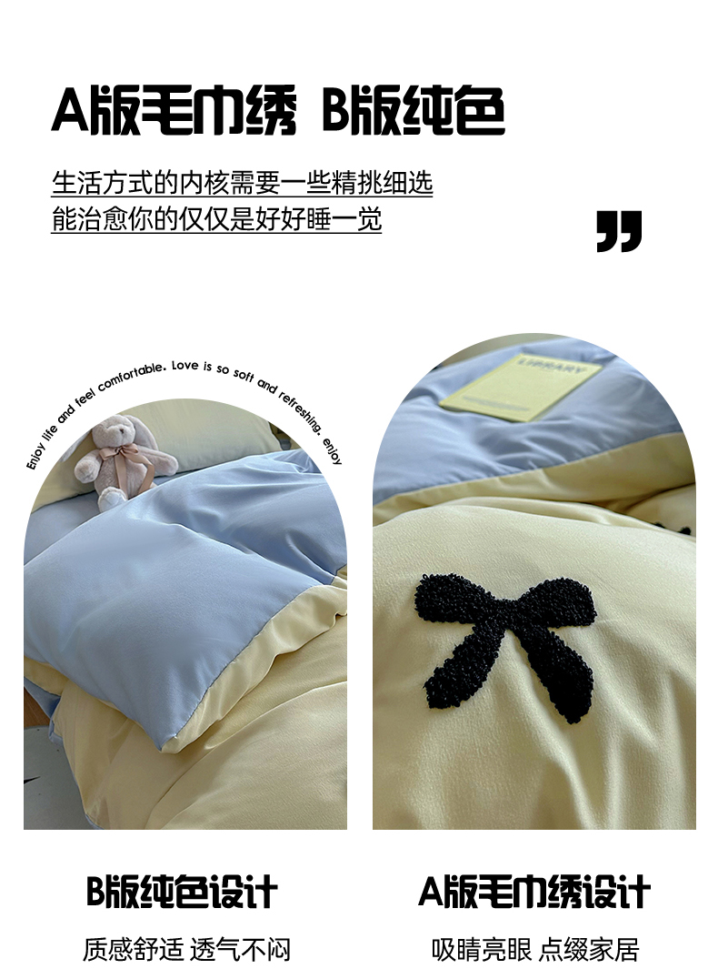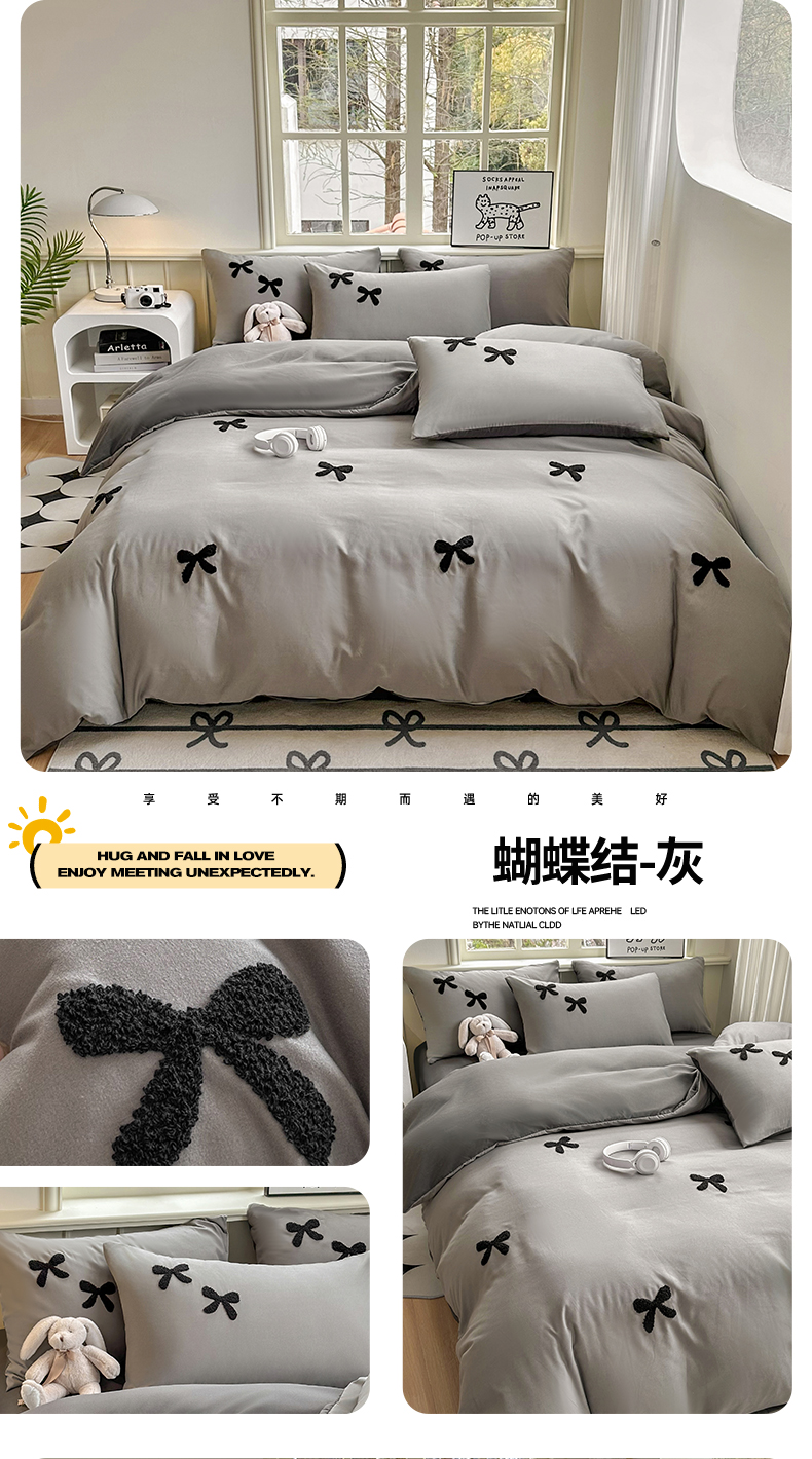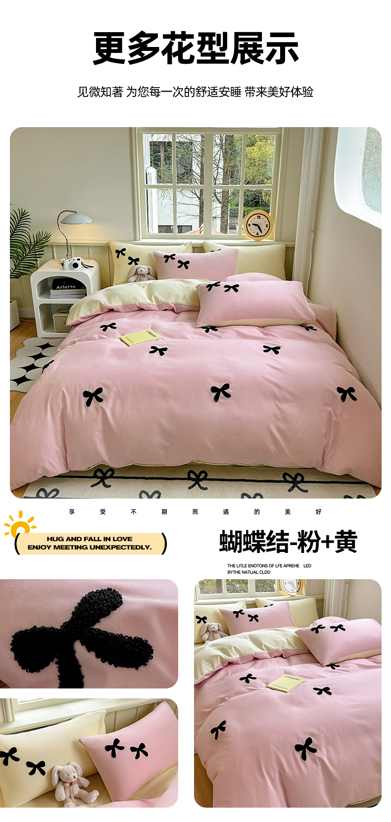 商品名称:(总)迪拜家纺 2025新款加厚水洗棉毛巾绣四件套-蝴蝶结