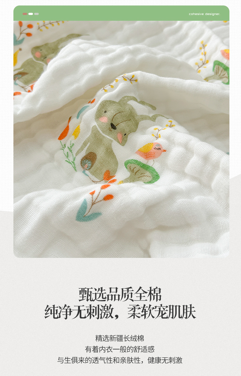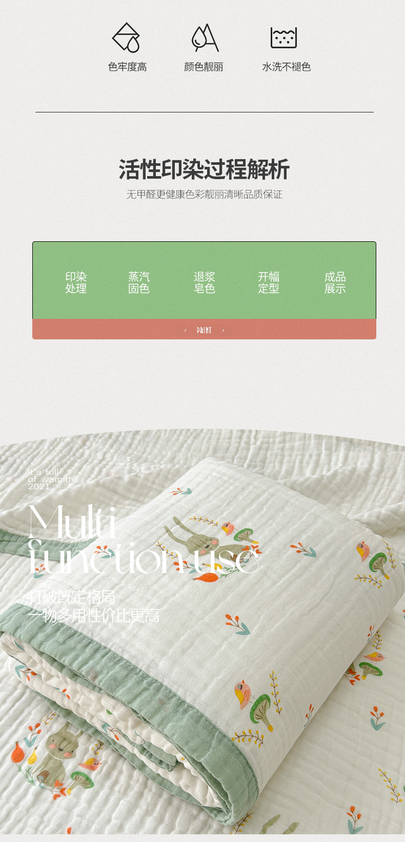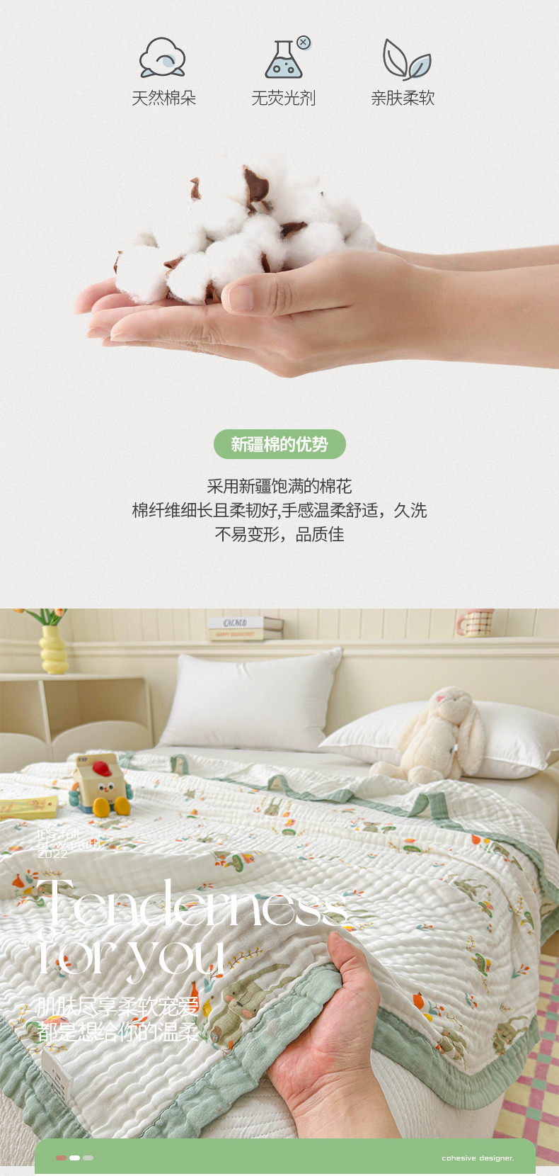 商品名称:萌飞 2025新款全棉纯棉六层纱布泡泡纱布毛巾被夏凉被空调被 果园飘香