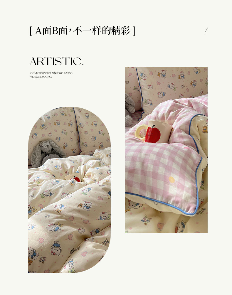 (总)六巷胡同 2025新款INS童趣可爱风卡通全棉四件套-第四系,彩虹甜筒猫,草莓害羞喵,粉格元气猫,咖格樱桃狗,蓝格嗨皮狗,圣诞麋鹿狗,仙人掌粉象,熊熊猫咪崽