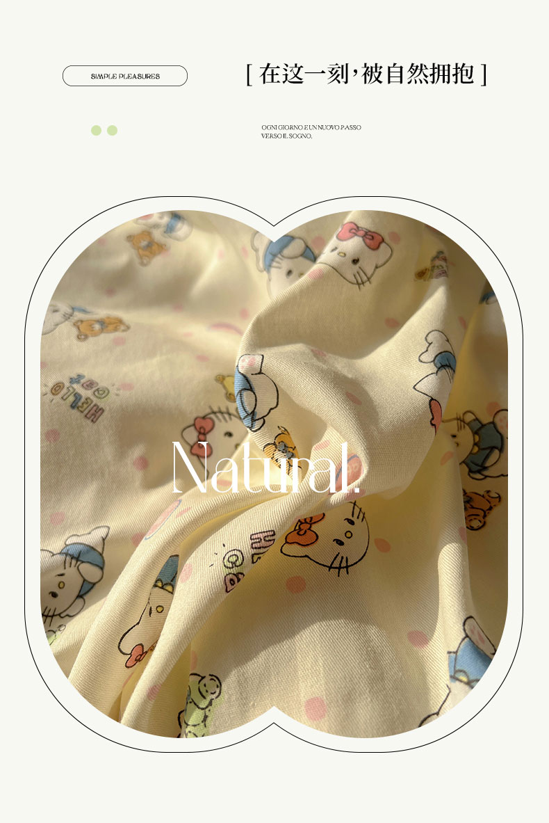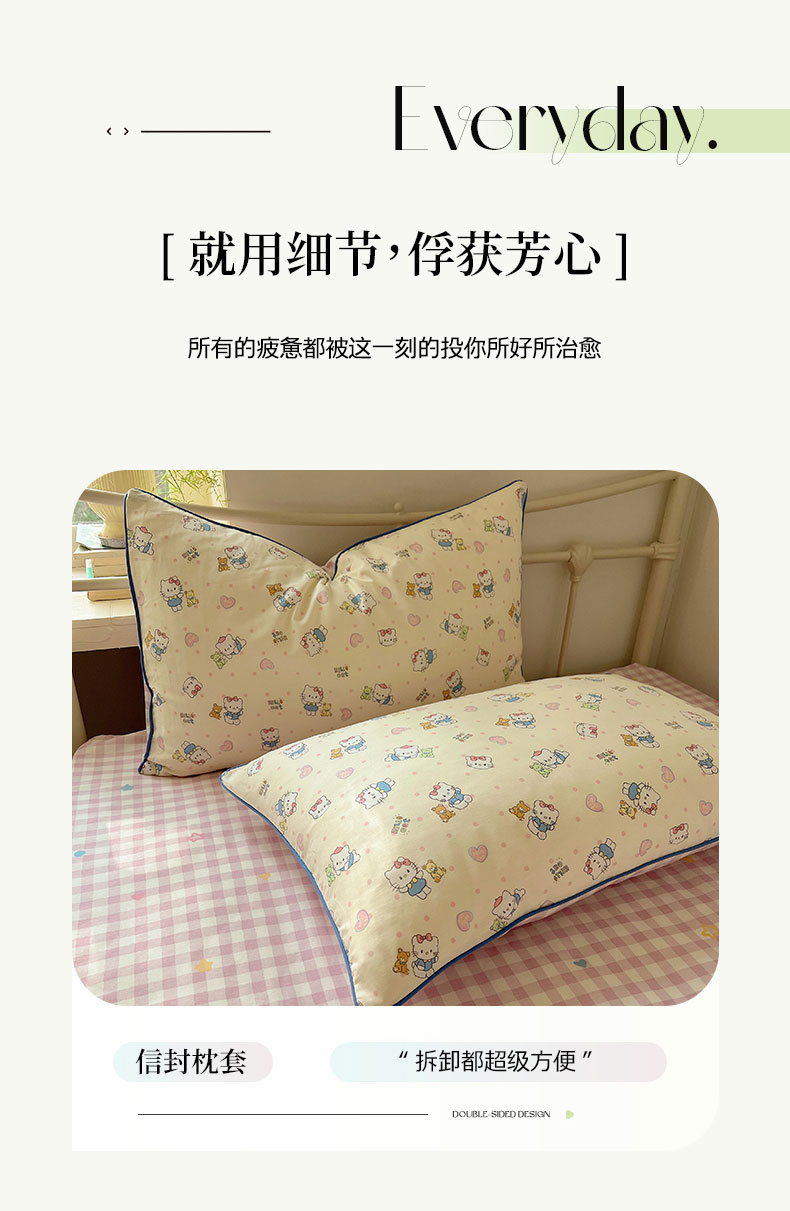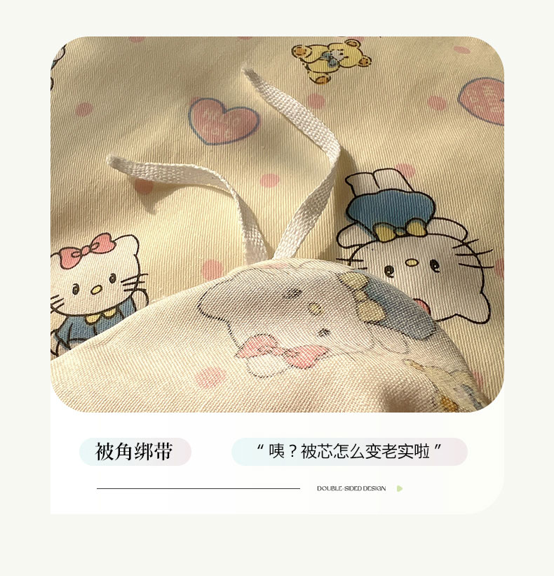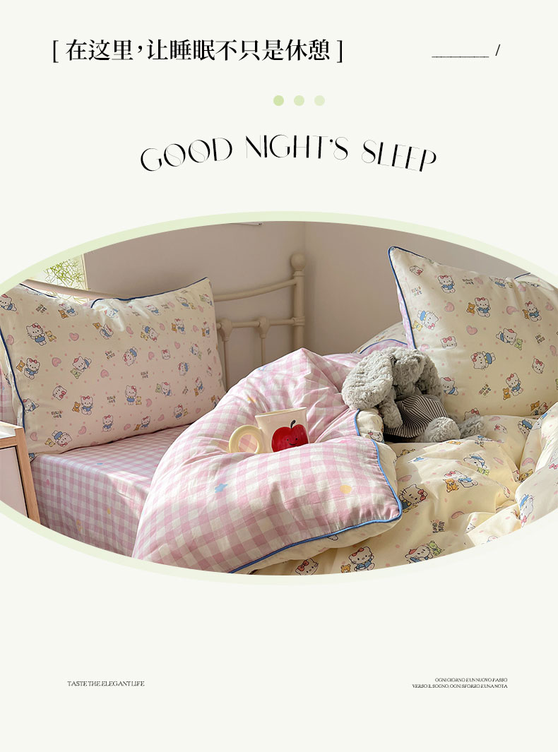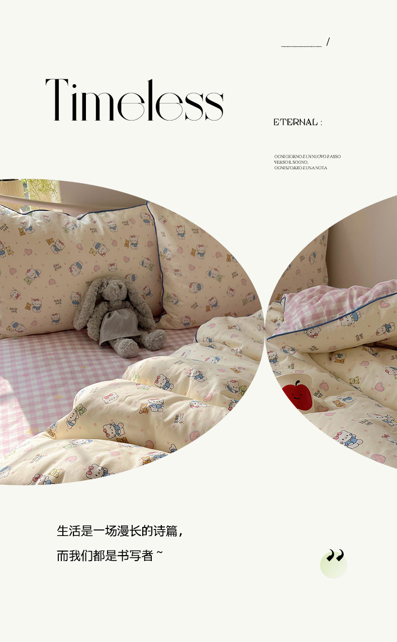 商品名称:六巷胡同 2025新款40S全棉纯棉INS童趣可爱风卡通嵌绳款四件套 嵌绳乖巧哈喽猫