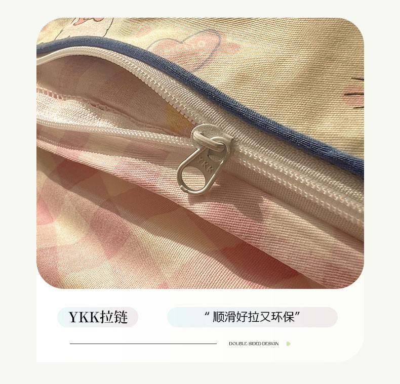 六巷胡同 2025新款40S全棉纯棉INS童趣可爱风卡通嵌绳款四件套 嵌绳乖巧哈喽猫