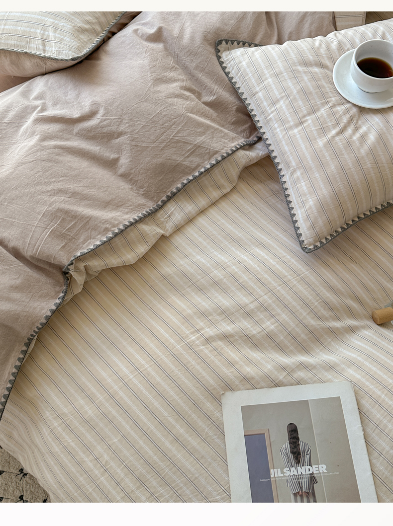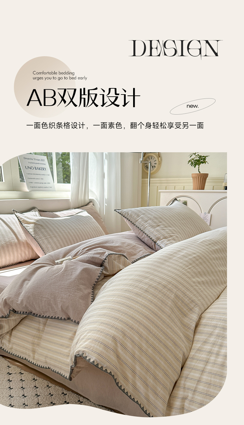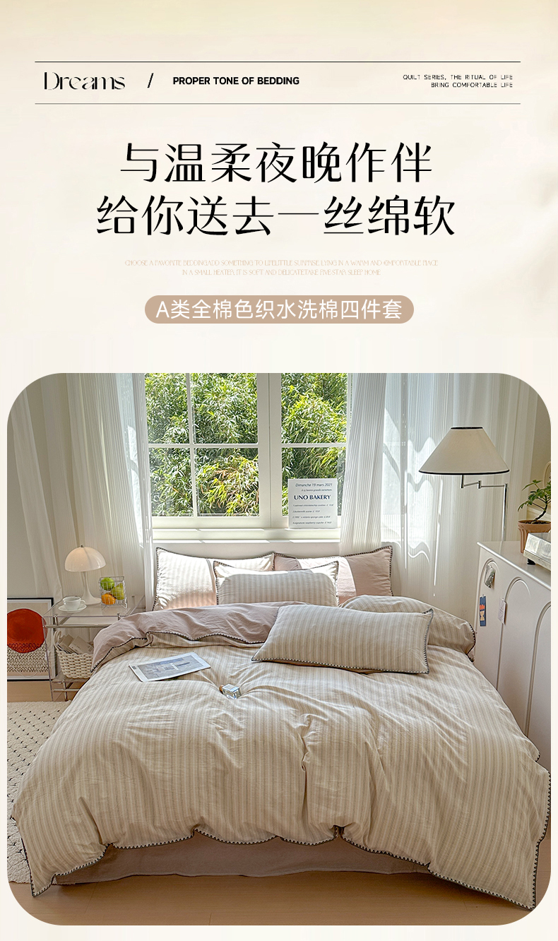 当前位置: 91家纺网 > 商品网购 > 床品套件 > 四件套 > 全棉普通四件套 > 晚依家纺 2025新款A类全棉色织水洗棉被套单件格子条纹四件套学生宿舍被罩三件套定制定做 乐事-米杏