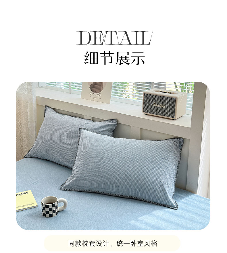 当前位置: 91家纺网 > 商品网购 > 床品套件 > 四件套 > 全棉普通四件套 > 晚依家纺 2025新款A类全棉色织水洗棉被套单件格子条纹四件套学生宿舍被罩三件套定制定做 时光-浅蓝