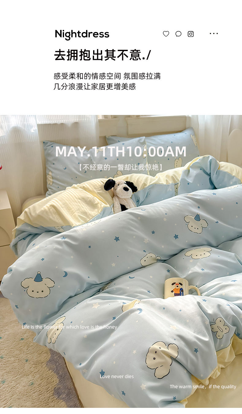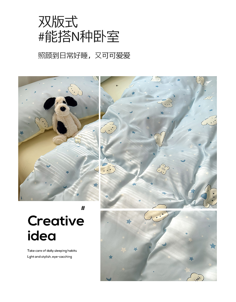当前位置: 91家纺网 > 商品网购 > 床品套件 > 四件套 > 沐芷 2025 A类软萌水洗棉卡通印花四件套床上用品三件套被套床单 星空狗