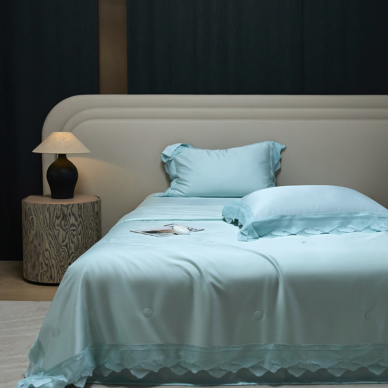 当前位置: 91家纺网 > 商品网购 > 床品套件 > 四件套 > 莱赛尔四件套 > 洽想家 2025新品80支兰精天丝大豆纤维夏被四件套-山峦迭 山峦迭-绿
