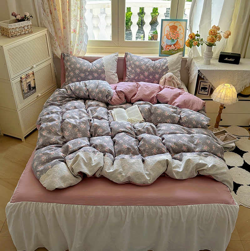 (总)阿曼达 2025新款韩系法式慵懒氛围感印花泡芙花边四件套(专版花型),樱花泡芙-黑,樱花泡芙-红,樱花泡芙-蓝,樱花泡芙-梨漫,樱花泡芙-宅妹粉