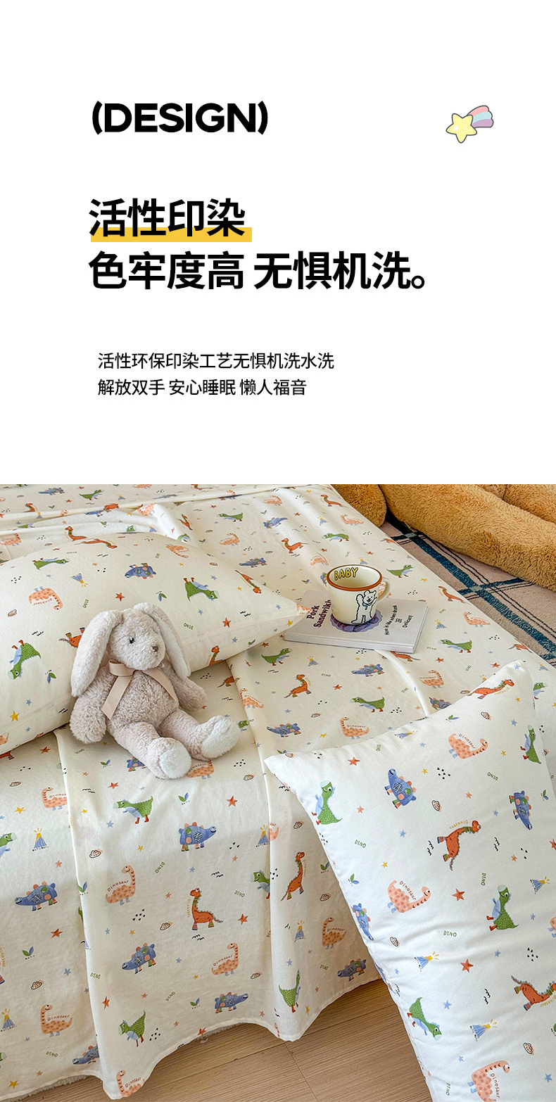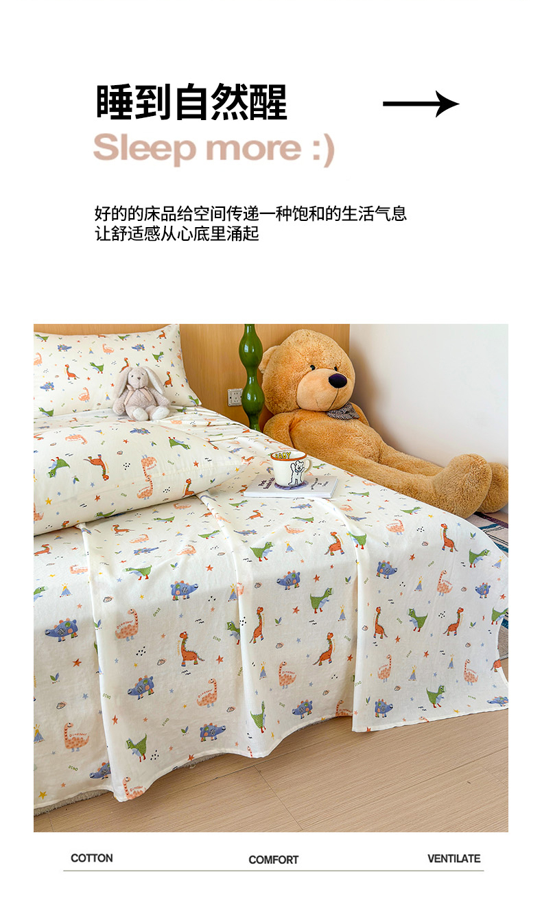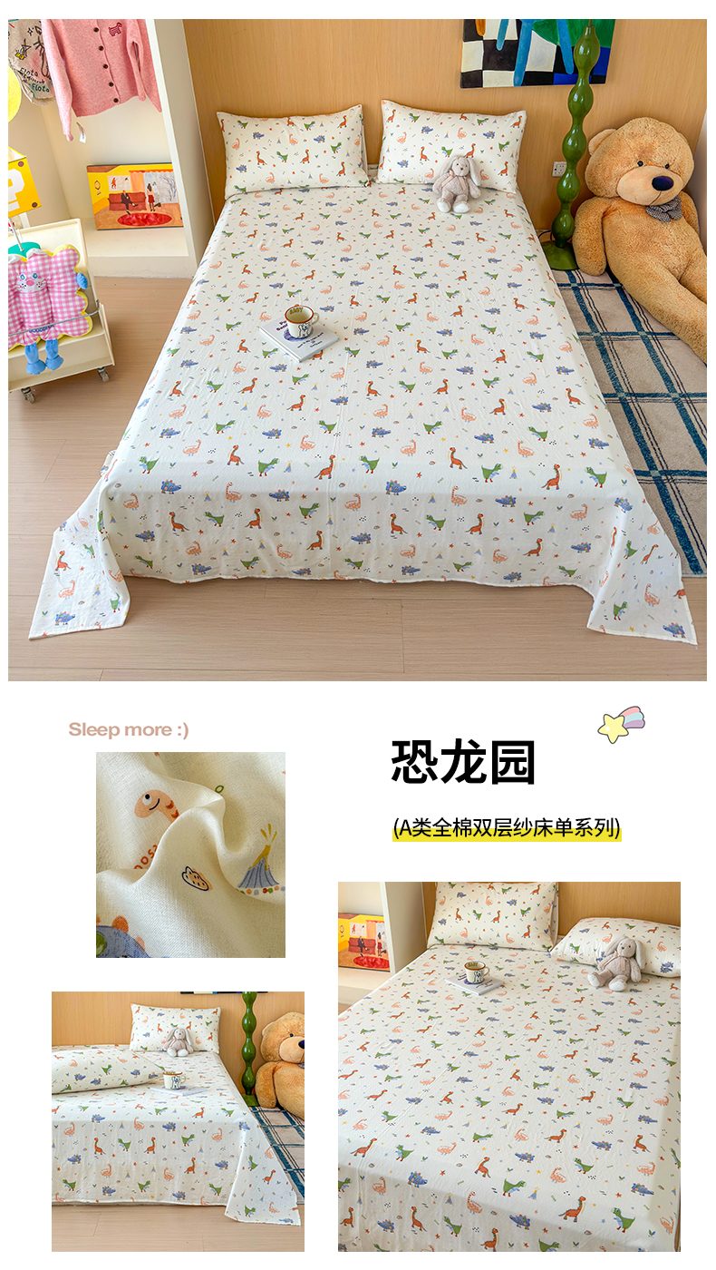 2025新款全棉双层纱单品床单床笠枕套-单床单 恐龙园
